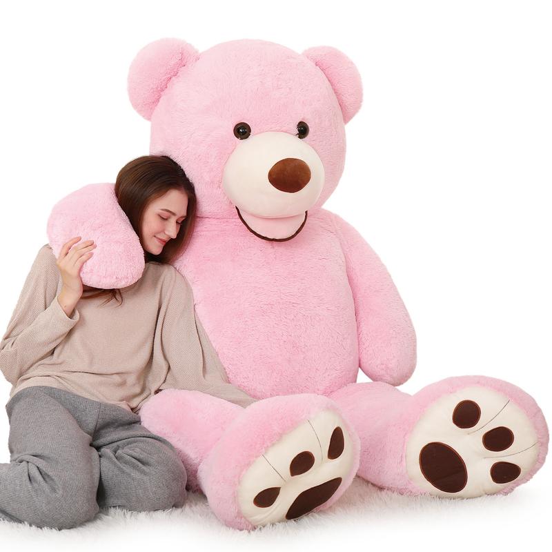 Huggable Size & Fluffy Bear: This giant teddy bear available in multiple sizes, suitable for ages 3 and up. Fluffy big bear is comfortable, incredible for natural sleep! Soft touch and full fill let the teddy bear stuffed animal does a good job at calming you down and get you sleep better. Pretty Anniversary Gift & Decor: The big teddy bear's cute appearance makes it perfect for gift giving. The big Bear will be a beloved gift for Birthday, Valentine Day, Christmas, and anniversaries, etc. It can works great as a decorative item for a themed party or baby shower, too. Vibrant Fun Colors to Choose: This teddy bear available in multiple colors and sizes, very fun and vibrant, satisfy most people's preferences. 6 feet fluffy giant bear in your room will brighten your day and bring you a smile! Cute teddy bear always a wonderful gift for friends or loved one, too. Great Shape & Well Made: We have partnered with a plush toy manufacturer with 30 years of experience. You can count on our cute plush toy's quality! The shell of the gaint bear has a good shape, and zippered design makes it easier to organize. Well-stitched body and embedded structure are safe for 3yrs+ kids. Lovely Appearance Brighten Your Day: We use vacuum packaging to prevent the teddy bear from falling into dust. Just put it in the dryer to dry and gently pat it in the sunlight, you will get a restored fluffy, and lovely teddy bear. We usually recommended hand washing or putting the giant bear into a laundry bag, machine washing, and air dry.