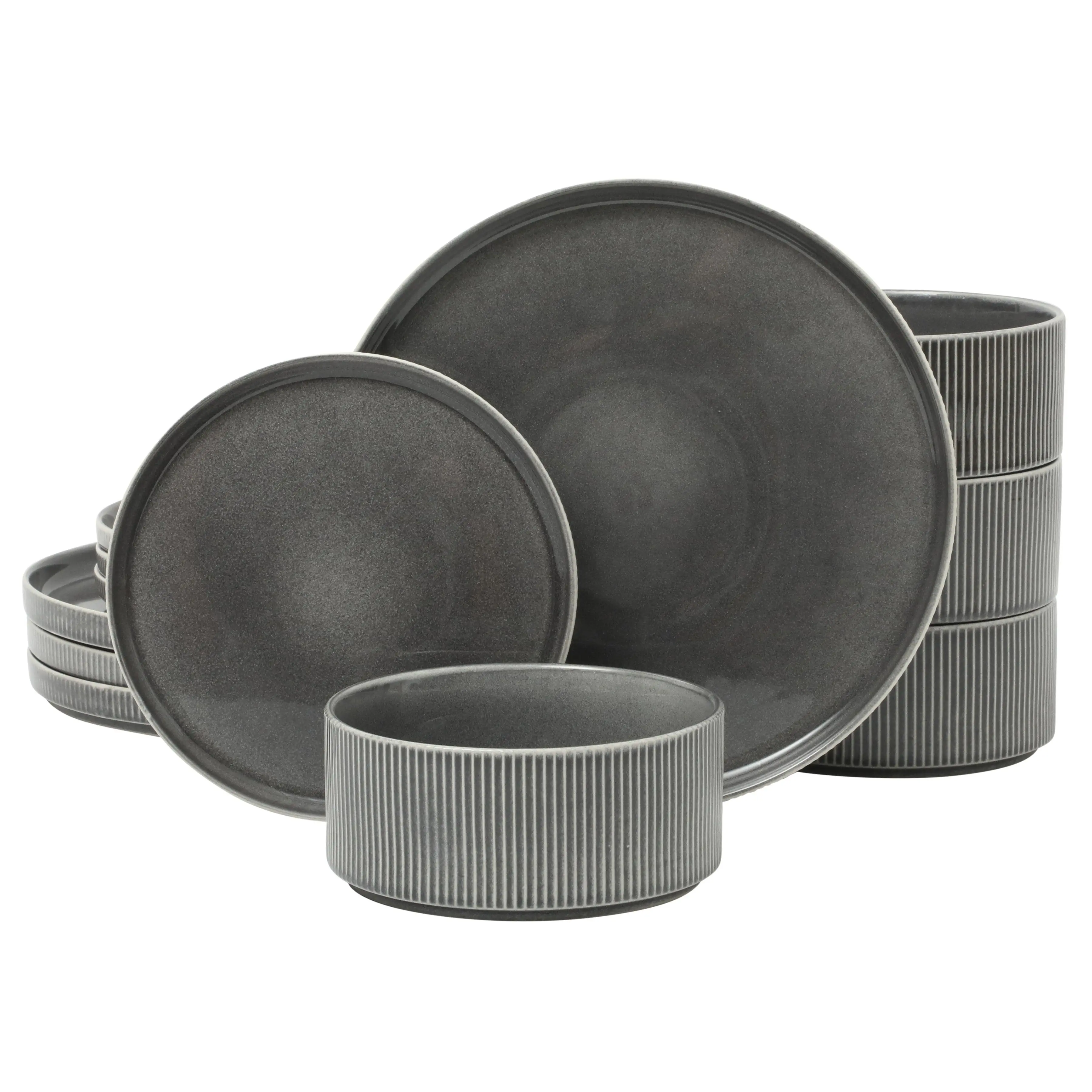 A picturesque coastal town, with its laid-back lifestyle and radiant sunshine, is the perfect source of inspiration—whether for storytelling, design, or innovation. The Solana Coast Reactive Dinnerware Collection captures the pristine charm of a seaside city and translates it into elegant dinnerware, ideal for both indoor and outdoor dining. The high-gloss finish mirrors the sun’s reflection on calm waters, adding a brilliant shine to every piece.Crafted from earthy clays, this collection transforms into stunning stoneware that complements any table setting and enhances the vibrancy of every dish. Its craftsmanship requires an intricate process, in which the pieces are fired multiple times at high temperatures to create a perfectly wear-resistant and non-porous construction. A layer of reactive glaze finishes the process to let each plate and bowl come to life with subtle naturla variations, ensuring that no two pieces are alike. Designed with tall, straight sides for effortless stacking and exterior ribbing for added depth and texture, this collection strikes the perfect balance between classic elegance and contemporary style.As a collection of stunning home staples, this dinnerware set makes a tasteful gift for any occasion. Loved for both its practical use and decorative appeal, it expresses your impeccable taste and well wishes to family, friends, new homeowners, and newlyweds. Dishwasher and microwave safeQuintessentially sophisticated and thoughtfully versatile, Gibson Elite offers a tasteful blend of form and function brought to a myriad of dinnerware, serving ware, and tabletop accessories. Quality in material selection and stylish aesthetics in designs and glazing techniques provide endless possibilities for creative tablescapes and dining occasions.