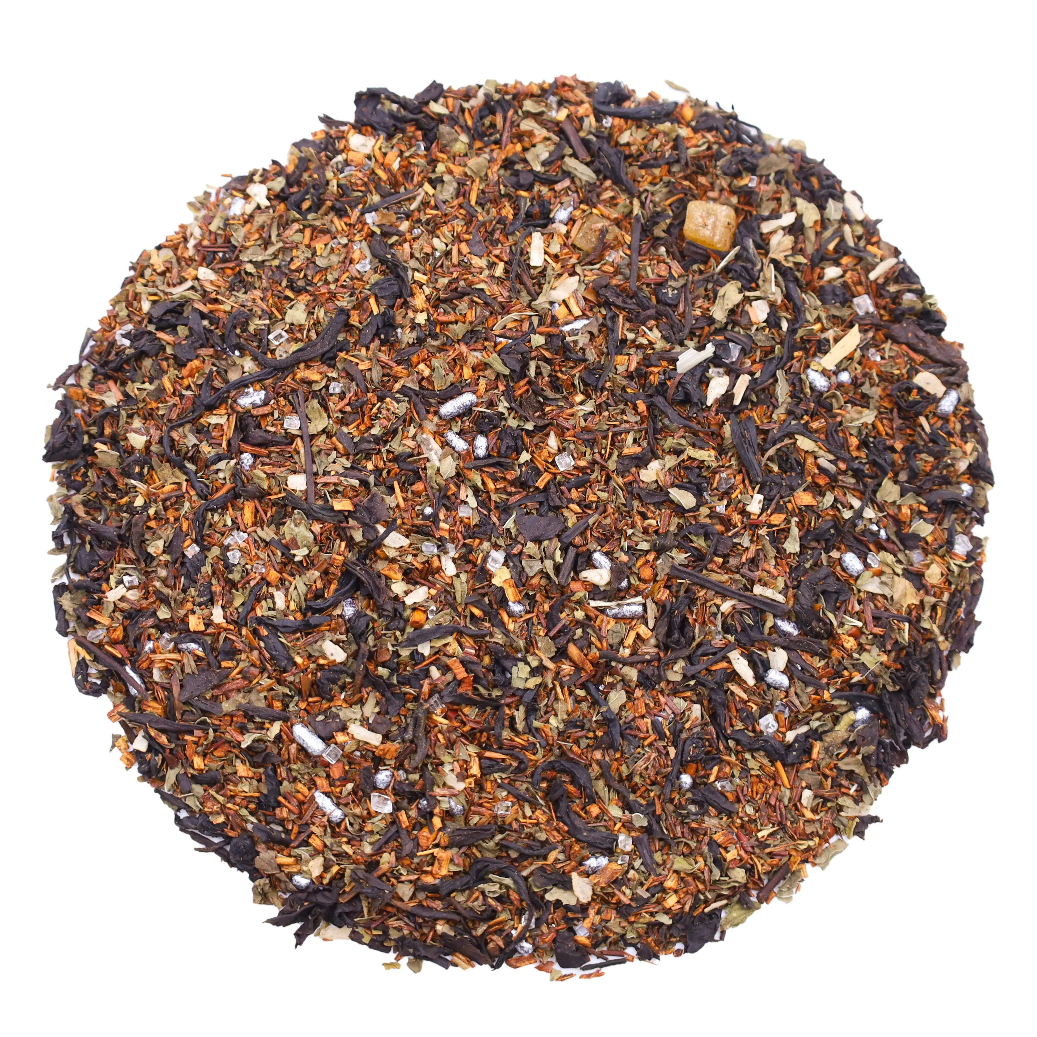 Black and Rooibos blend with a spearmint forward taste and a sweet finish. Makes a classic iced tea!