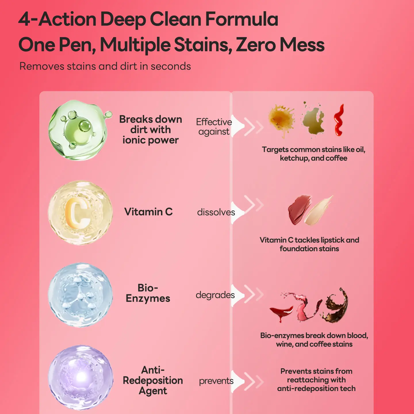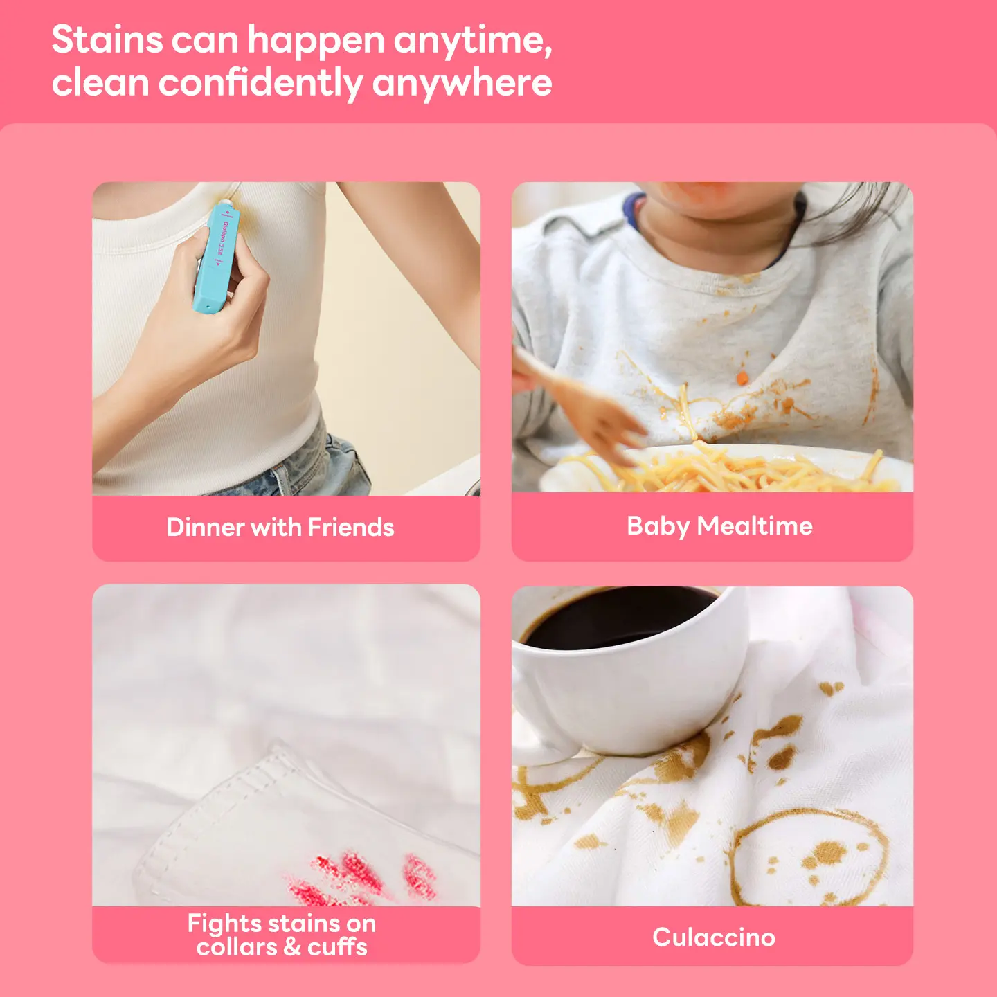 【Quick and Effective Stain Removal】It the ideal solution for swiftly eliminating fresh stains such as coffee, wine, and ketchup. Whether you're at home or on the go, this stain remover quickly restores your clothes to their original, clean state.