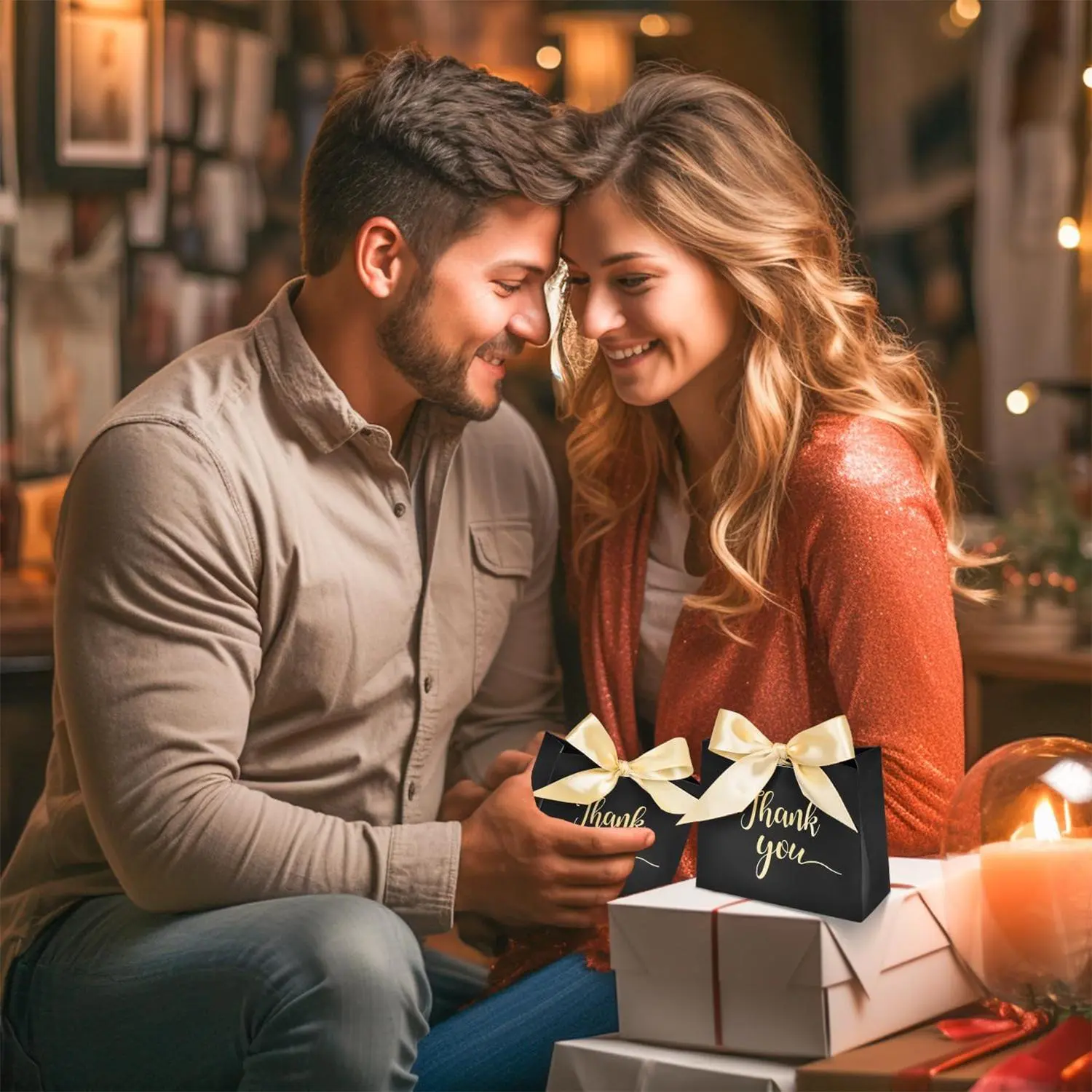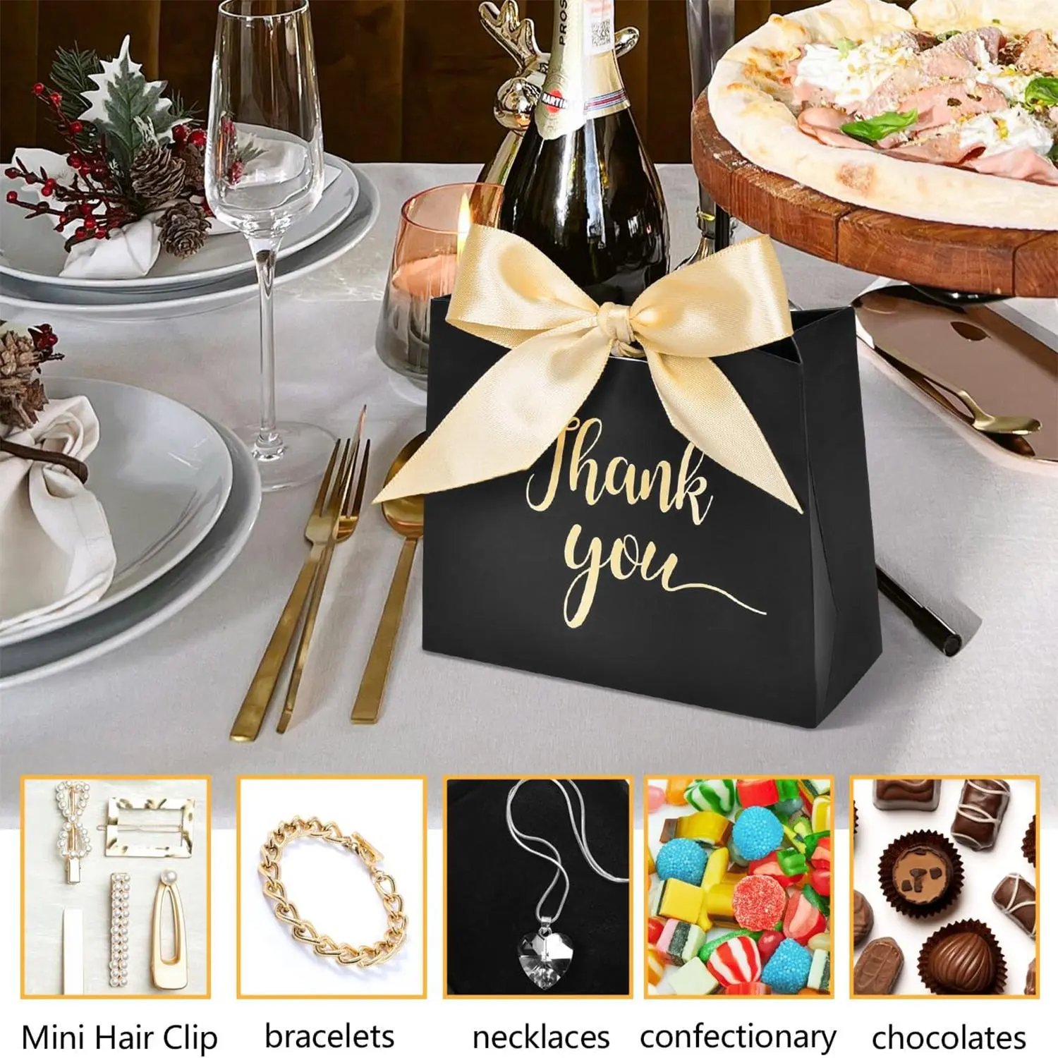 5. Thank You Gift Bag, 50pcs/set Paper Gift Bag with Ribbon, Party Favor Bag, Mini Candy Treat Bag for Birthday Wedding Party Holiday, Graduation Gift Wrapping