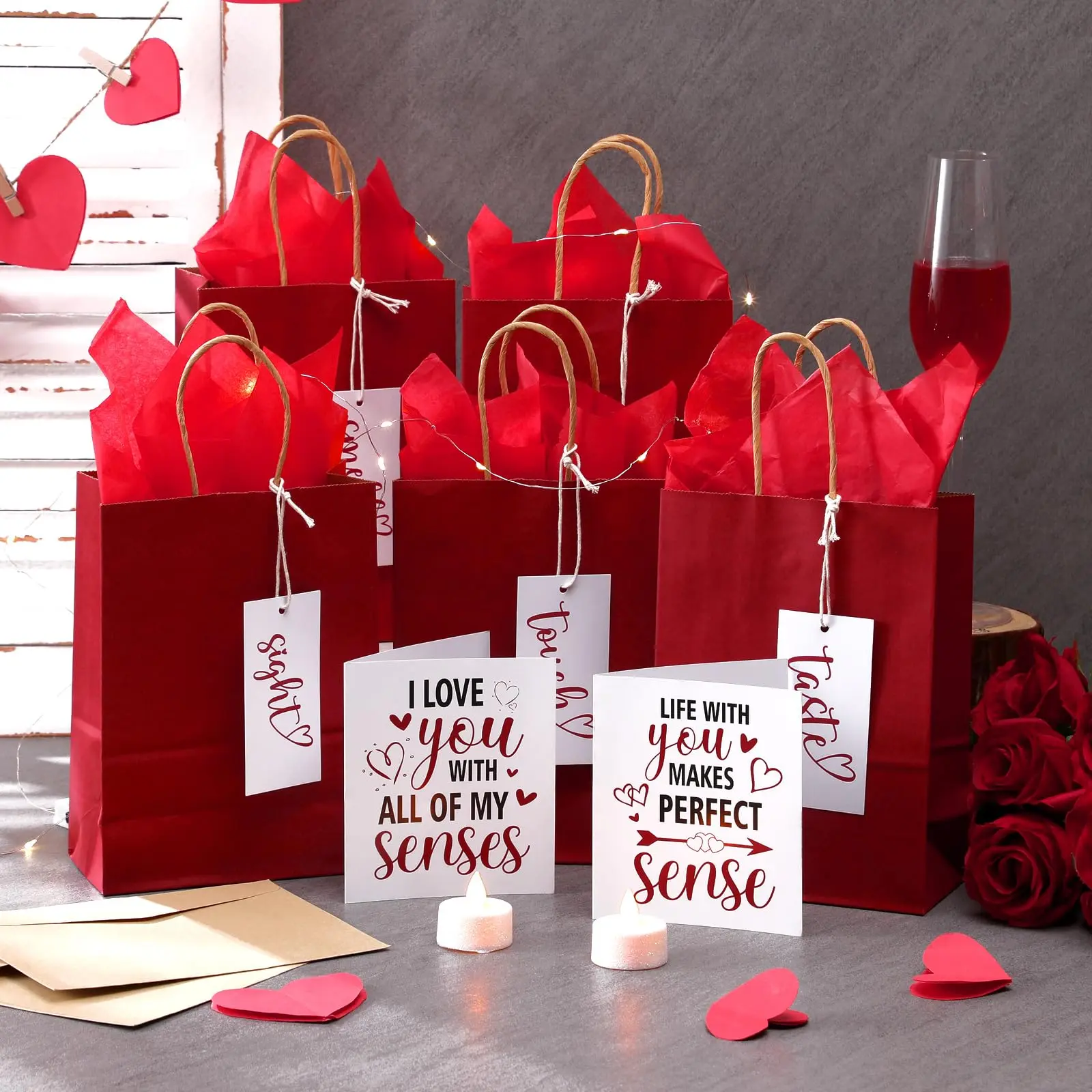 The distinctive '5 Senses' design adds a thoughtful touch and also makes the gift set ideal for couples; These tags are printed one of the 5-sense words respectively, and greeting cards are printed meaningful sentences, combined with heart design, novelty and stylish, sweet Valentine's gift for him, her.