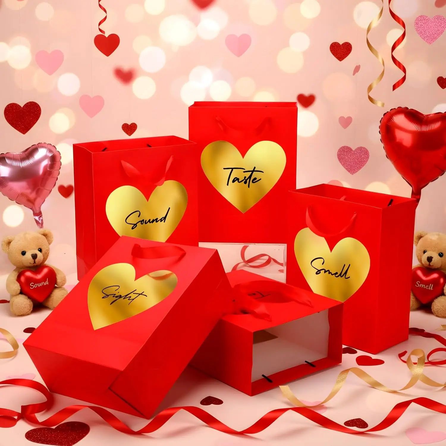 Each of the five senses gift bags for him comes adorned with English letters and sentimental annotations representing the five senses.