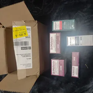 I love Dr Melaxin and have continued to order from the shop. I am disappointed because my eye patches were leaking onto the box because they were screwed on incorrectly.