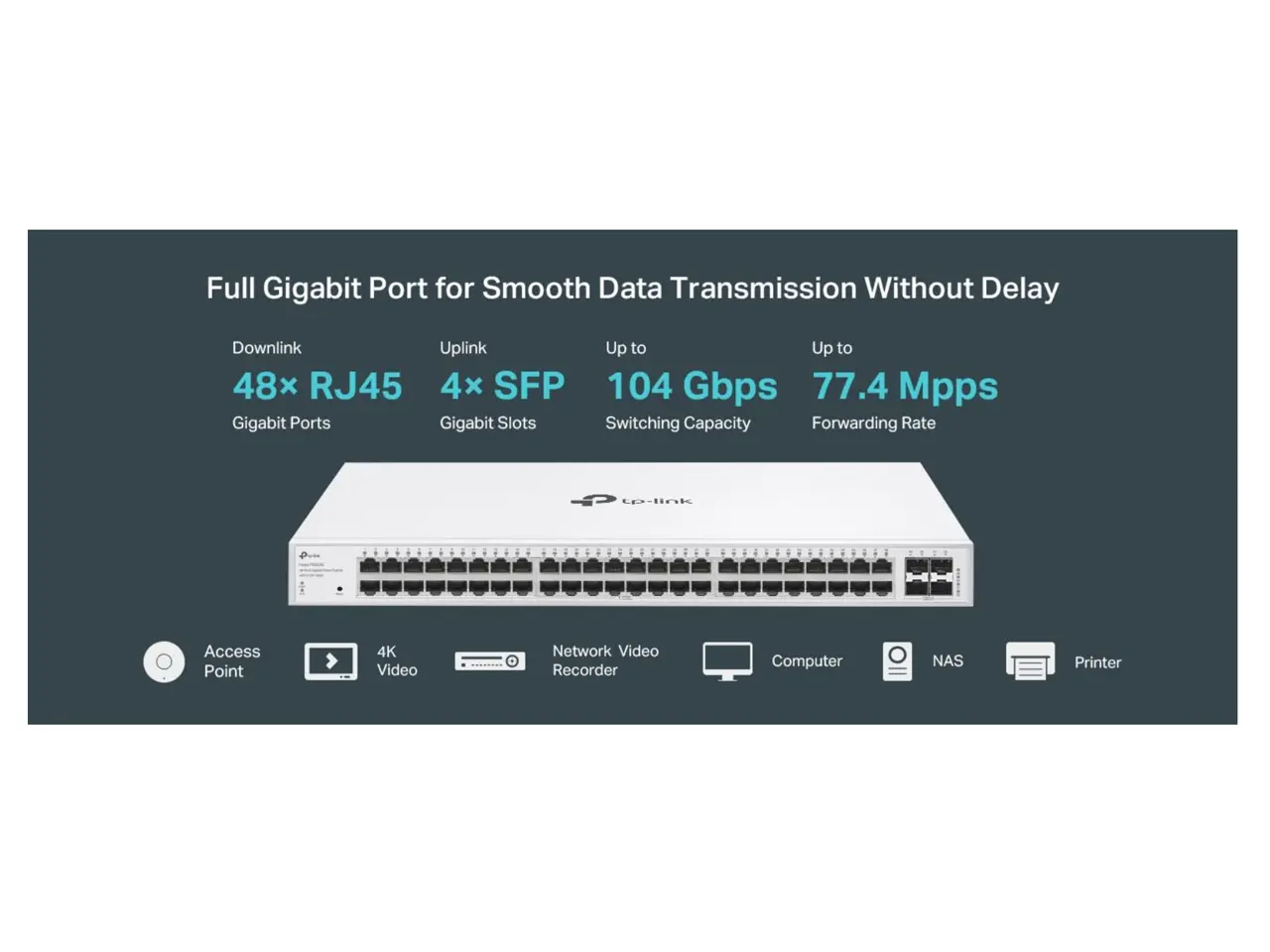 5. TP-Link Festa FS352G 52 Port Gigabit Smart Managed Network Switch - 48 RJ45 ports & 4 SFP slots, Free Cloud Access, Static Routing, Vlan, IGMP Snooping, rack-mountable, fanless, Does not work w/ Omada