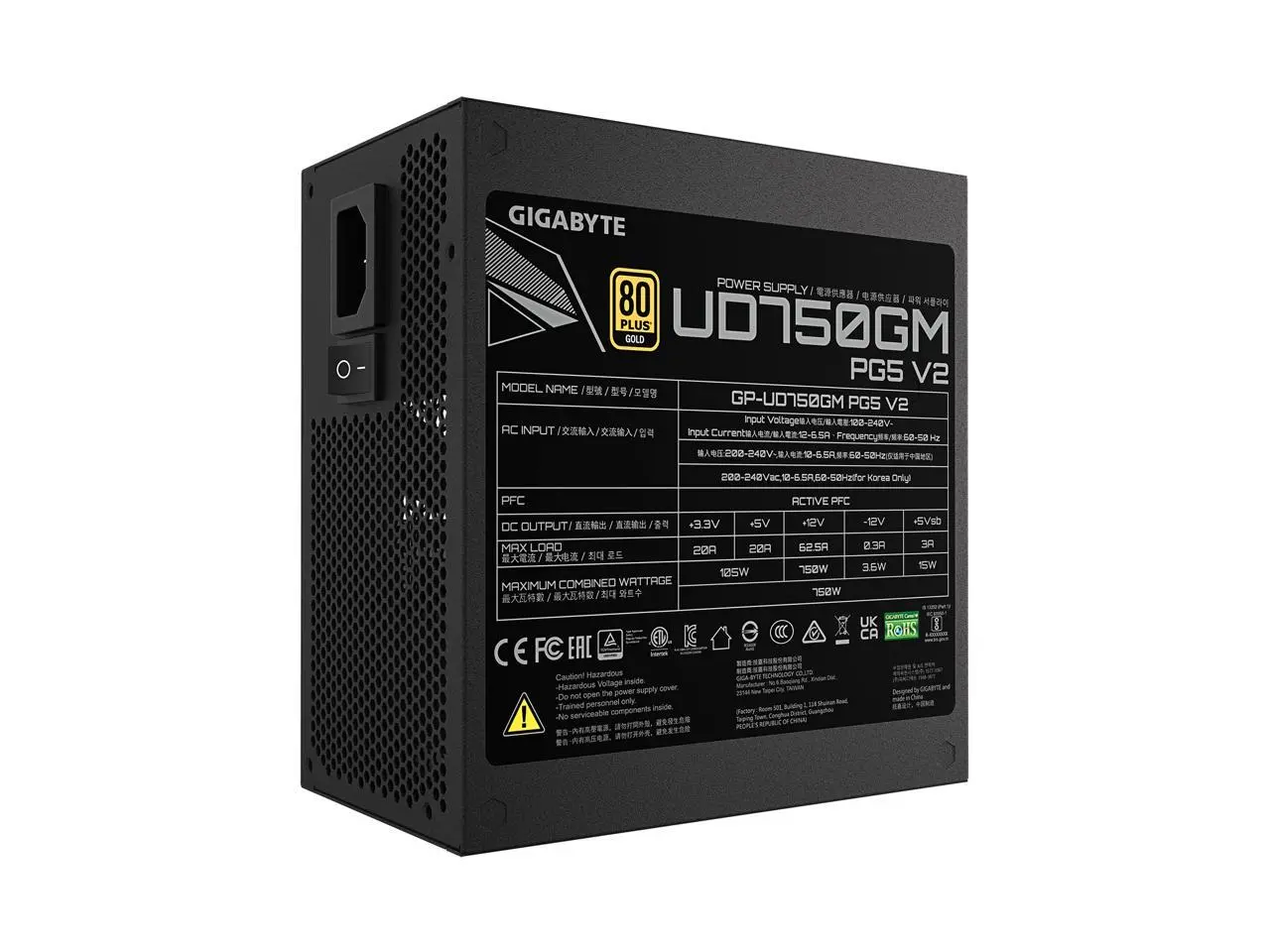 GIGABYTE GP-UD750GM PG5 V2 750 W 80 PLUS GOLD Certified Active PFC Power Supply