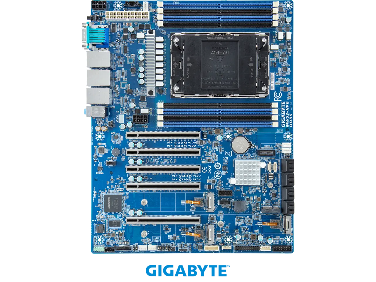 5. GIGABYTE MW53-HP0 Intel® Xeon® W Workstation Motherboard Board, Single processor, LGA 4677, Intel® W790 Chipset.