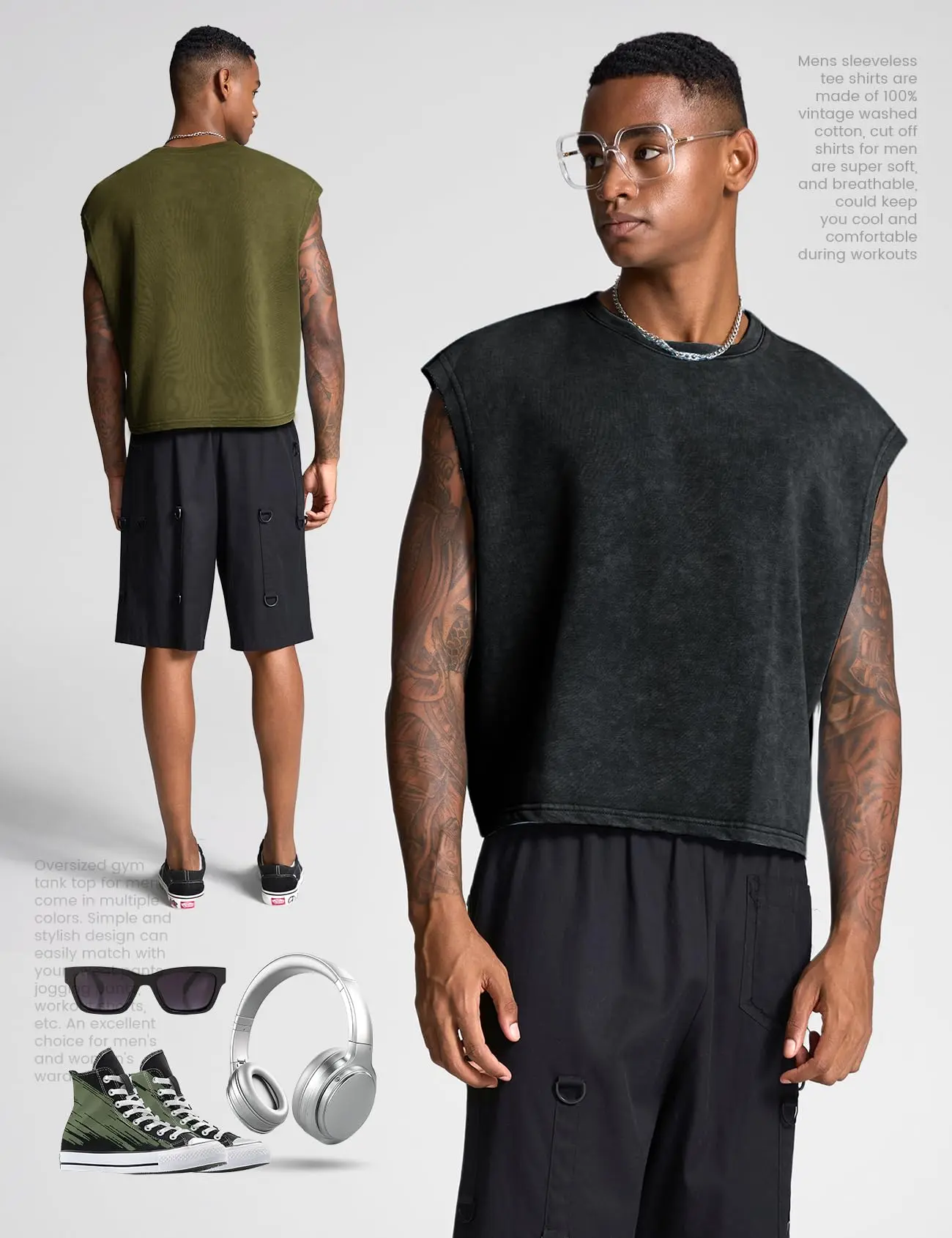 These shirts feature a vintage faded color and crop top style. The professional cut highlights muscle lines and figure perfectly. The simple and stylish design easily pairs with shorts, jeans, pants, joggers, cargo pants, and sneakers.