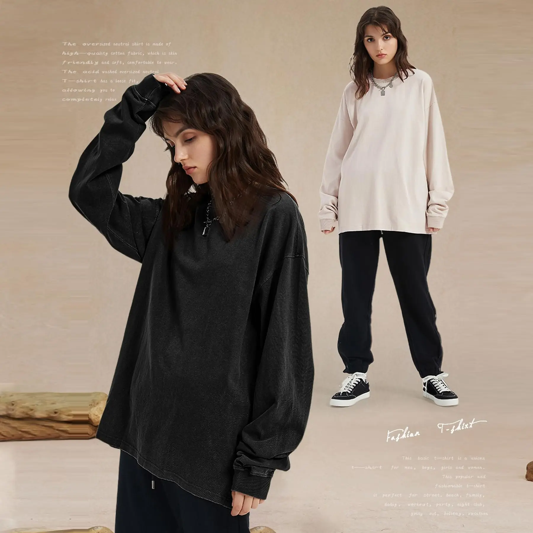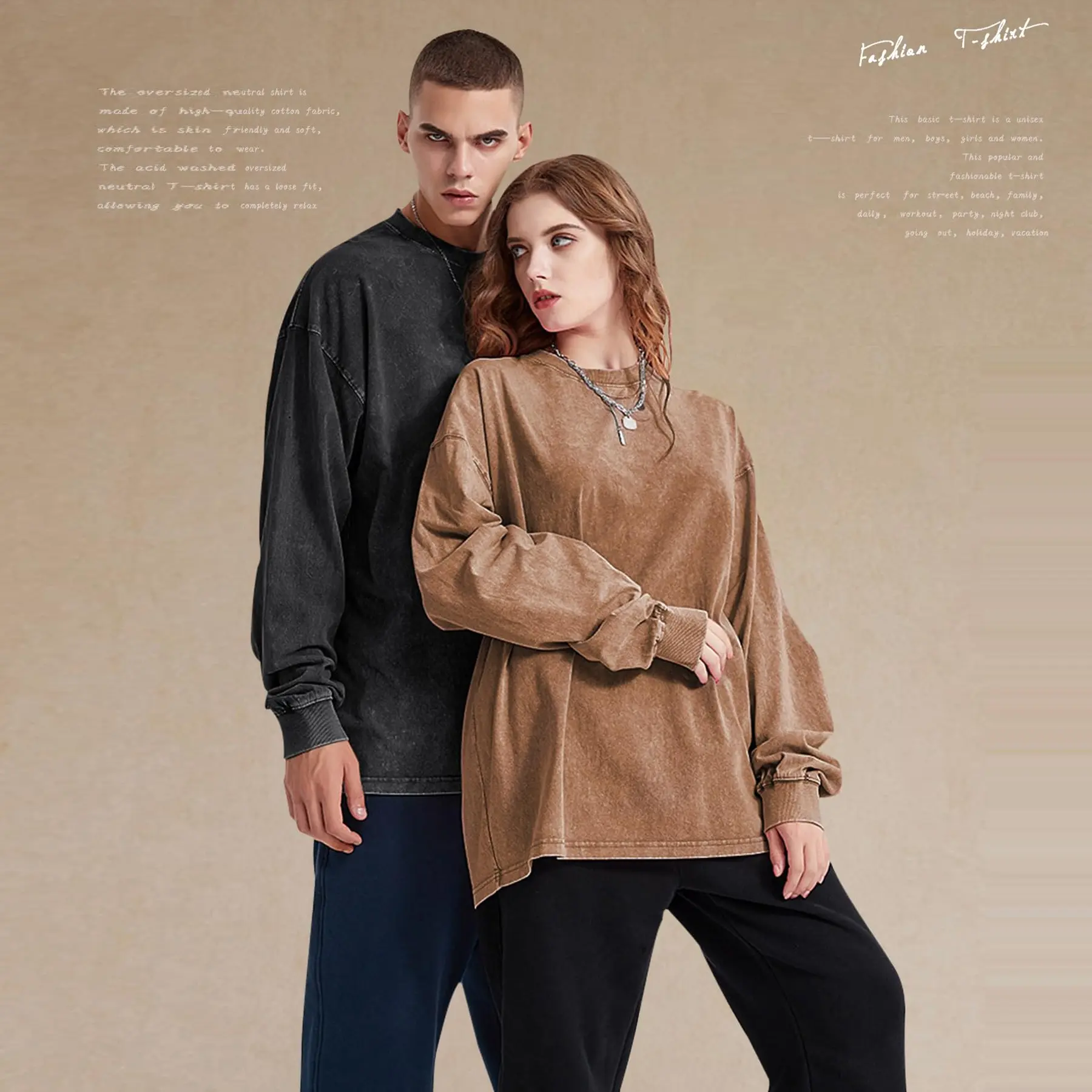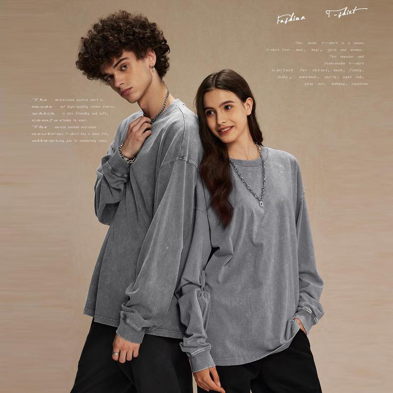 ·Features: Drop shoulder tshirt, oversized long sleeve tshirts, round neck, loose fit baggy t shirts for men, cotton acid washed t-shirts, ribbed cuff, trendy street wear