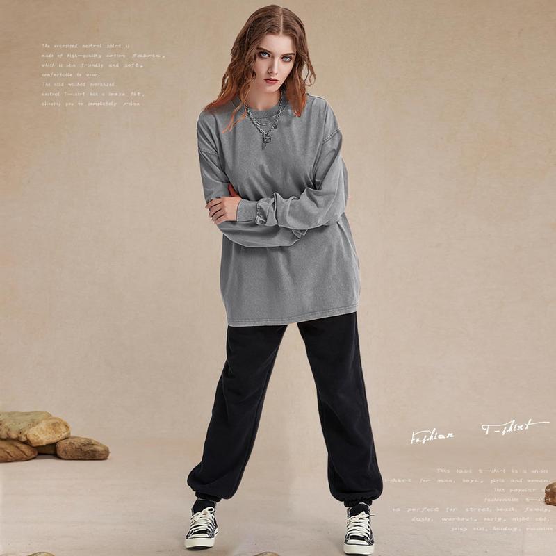 ·Match: Oversized long sleeve t-shirt looks great with shorts, jeans or sweatpants. You can also go out with a jacket or coat; can be worn in all seasons: spring, summer, fall, winter.