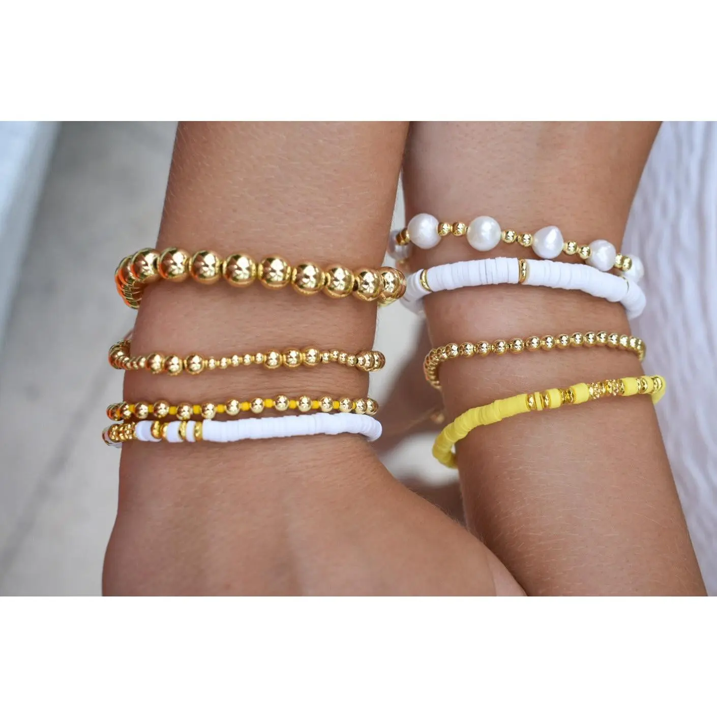 very cute and dainty, the white color pairs well with the gold. the only thing i don’t like is that the string is the clear/whiteish plastic stretchy bracelet string instead of a fabric one since they tend to break easier and not last as long.