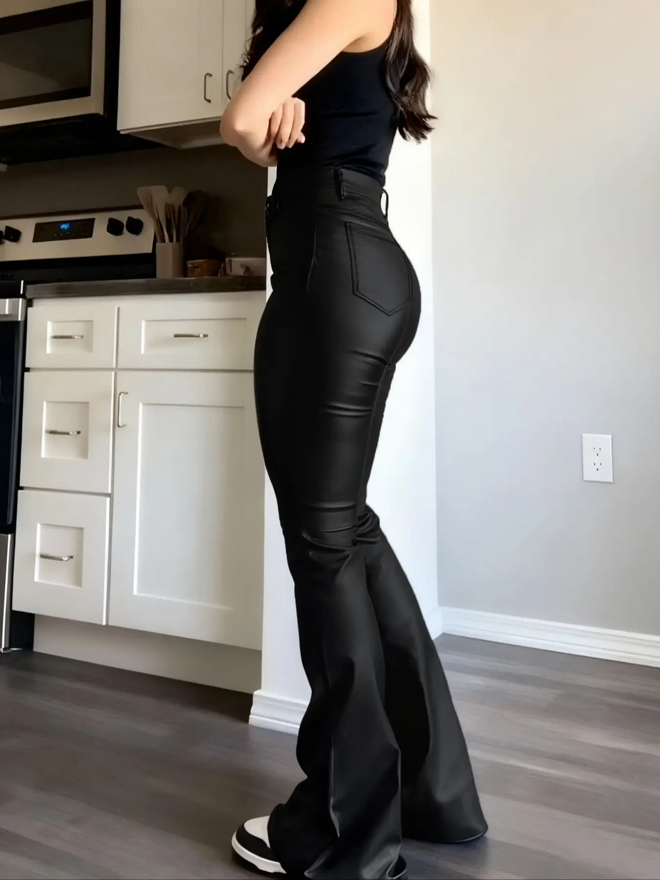 ❤️Slip into these PU flare pants and instantly shape a more confident, flawless you. ✨ Stretchy, comfy, and stylish — the perfect bottoms for fall & winter outfits.  #hd #pants #casualoutfits #spotlightfinds #tiktokshoplabordaysale