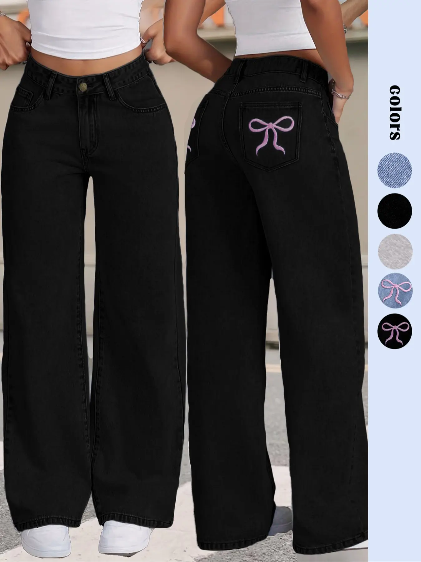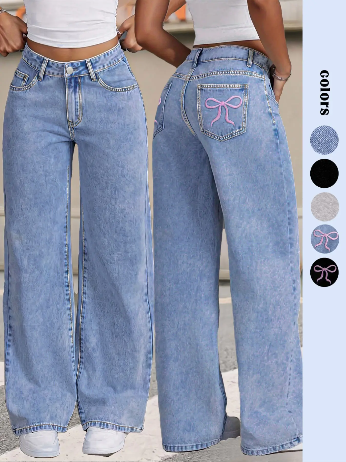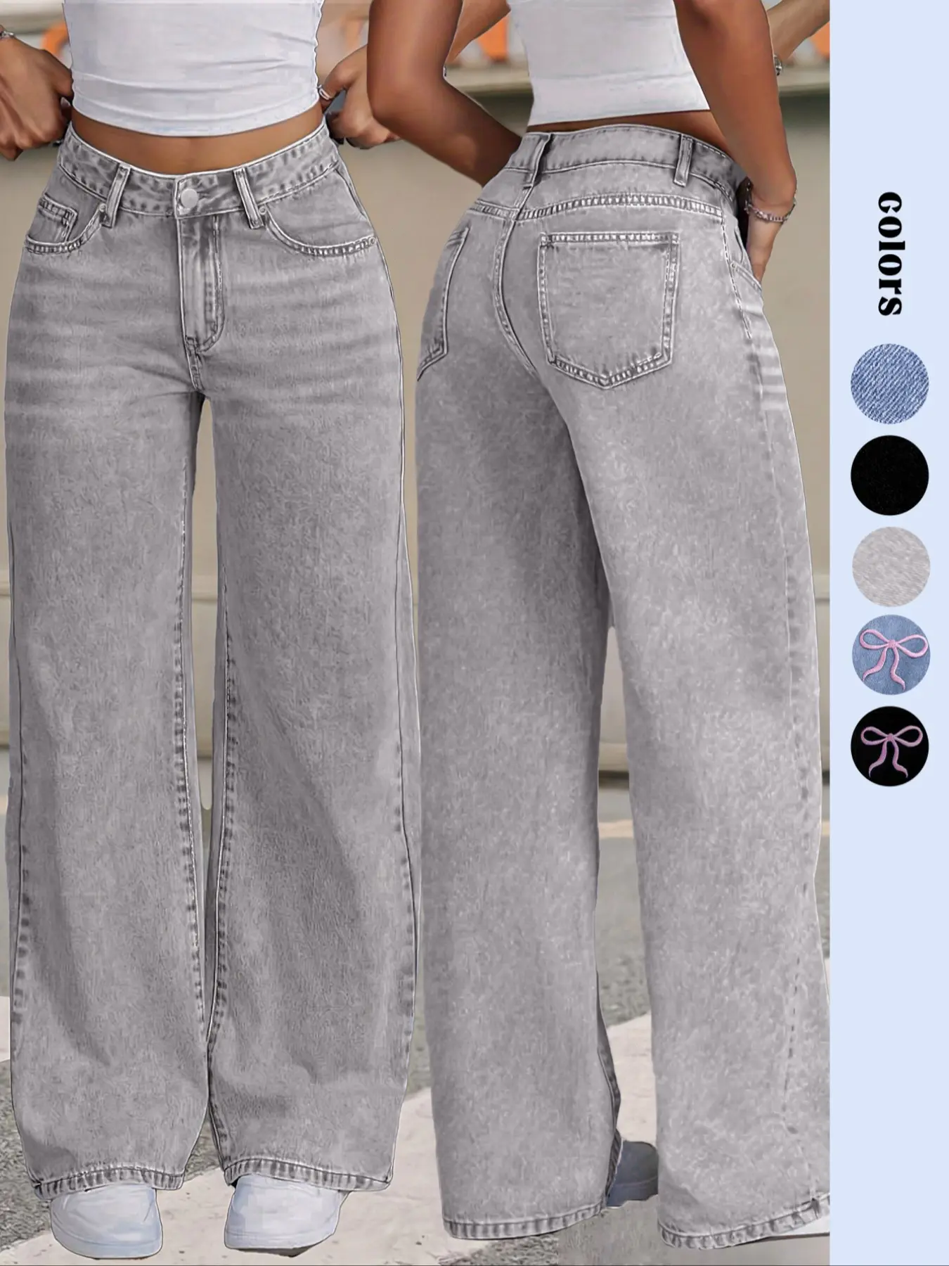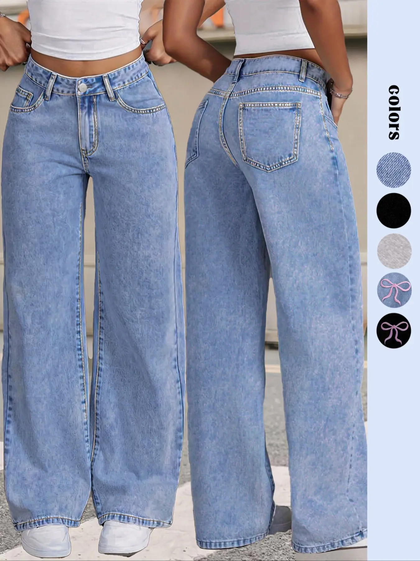 Y2K Women Front Button Pocket Straight-Leg Casual Denim Jeans For Daily Wear Ladies Pockets Bottoms For All Seasons Baggy Pants, Trouser#foryoupage #fypシ゚viral #great #product #foryoupage