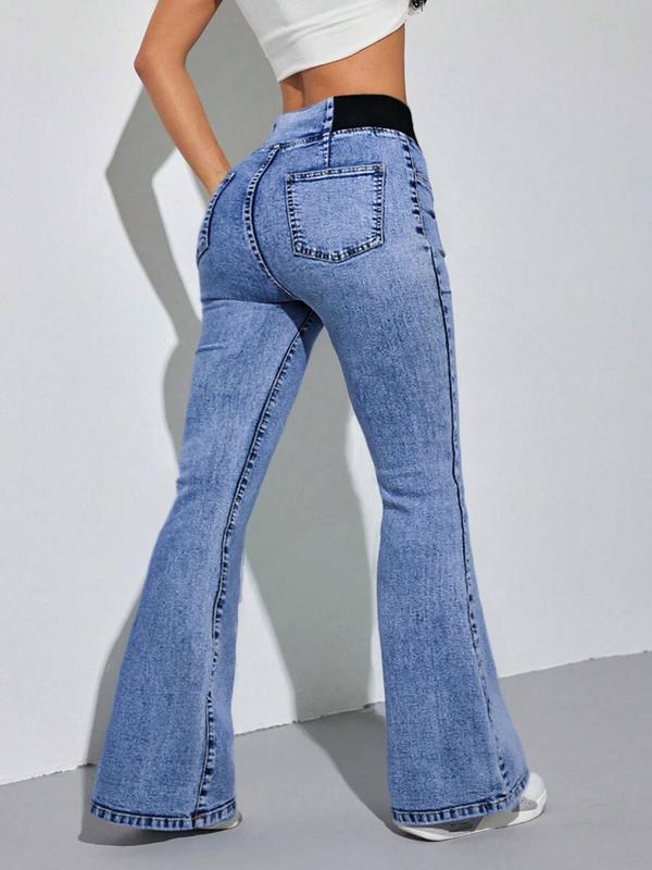 Love these pants! I like my flares to be snug all the way down to my knee area and then flare out and these do exactly that! I do worry with how much sitting and standing that the wide waist band may be prone to folding in on itself, but for now everything is perfect! Iām 5ft tall and 200lbs