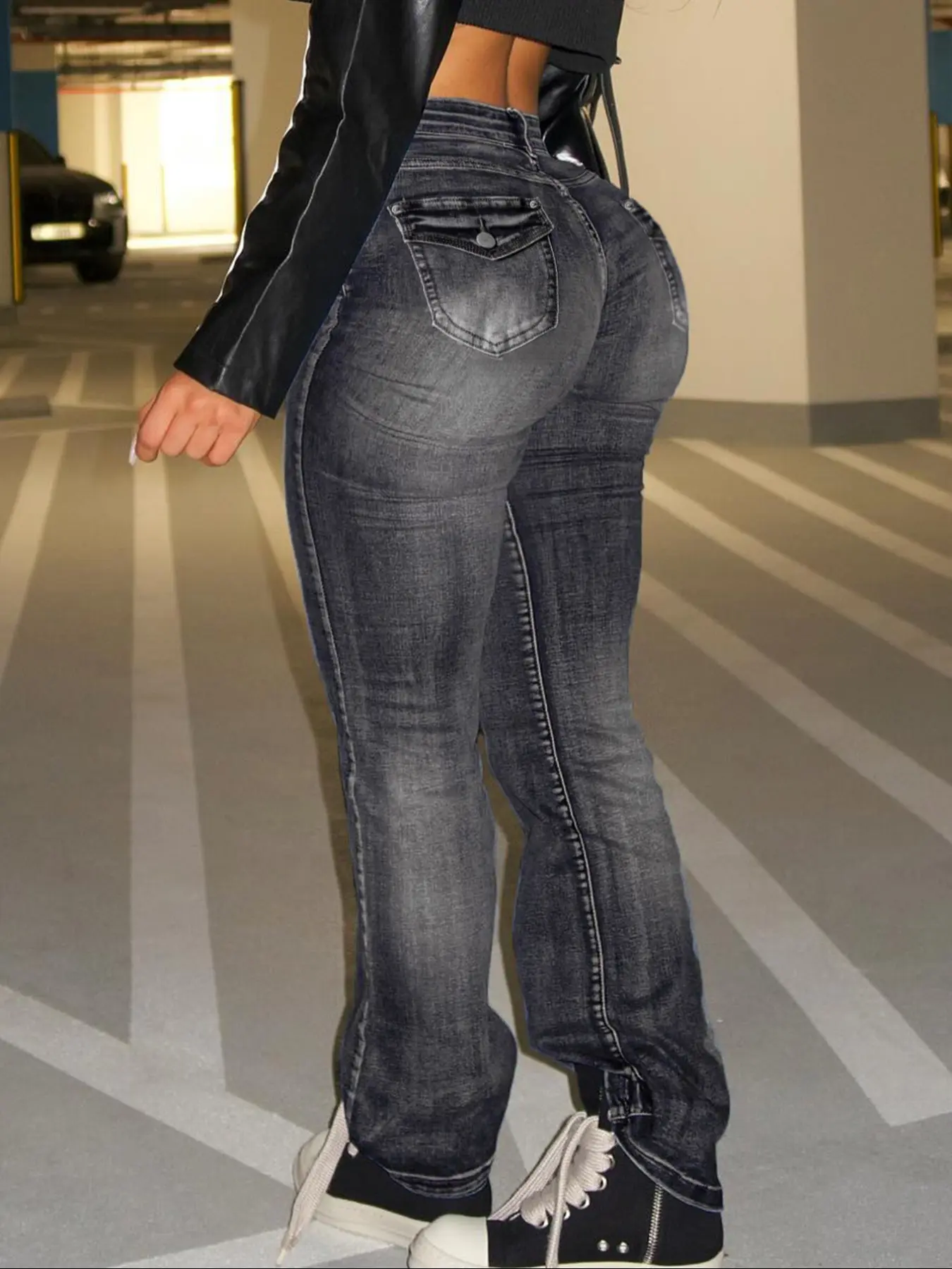Women's Mid-Stretch Flared Vintage Wash Jeans, Vintage Mid-Low Waist Waisted Flare Jeans, Starched Jeans for All Seasons #blackjeans #floraljeans #boyfriendjeans #jeanshopping #boyfriendjeansoutfit #shortgirljeans #jeansforcurves #judybluebootcutjeans #plussizewesternfashion #pushupjeans