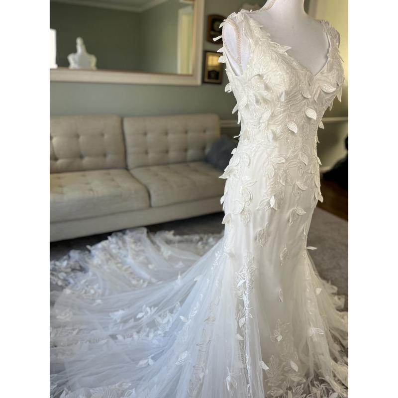 5. Gina Fit and Flare Wedding Dress with 3D Leaf-Like Lace, 3D Lace Wedding Dress, Custom 3D Ivory Wedding Dress, Custom 3D Lace Dress