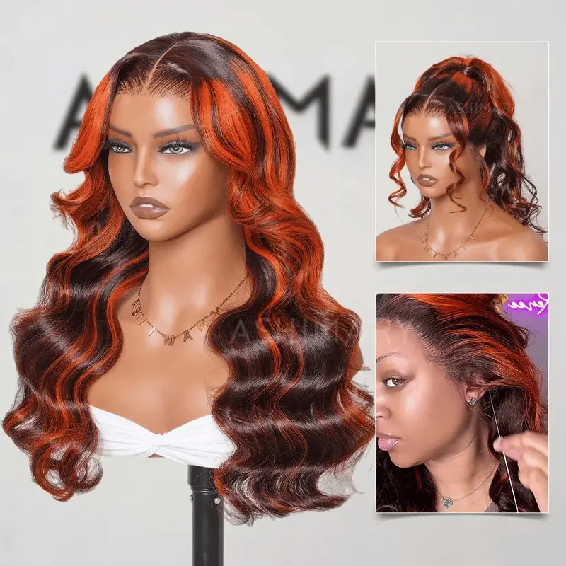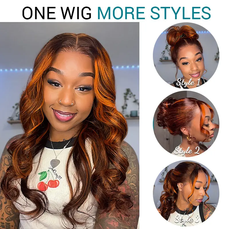 This hair is absolutely gorgeous! The ginger highlights on the brown body wave blend perfectly and look so natural. The human hair is super soft, full, and easy to style. I’ve gotten so many compliments definitely worth it!