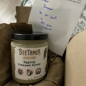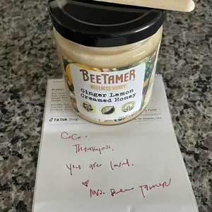So far I am loving all the honey that I picked out. Shipping wasn’t that bad for being states away and a small business. It came faster than I thought it would get here. If your on the fence just do it! The ginger lemon had that thicker top layer which was like candy but it was very smooth and the simple you are loved bite with all 3 orders was so cute. Thanks Mrs. Bee Tamer!