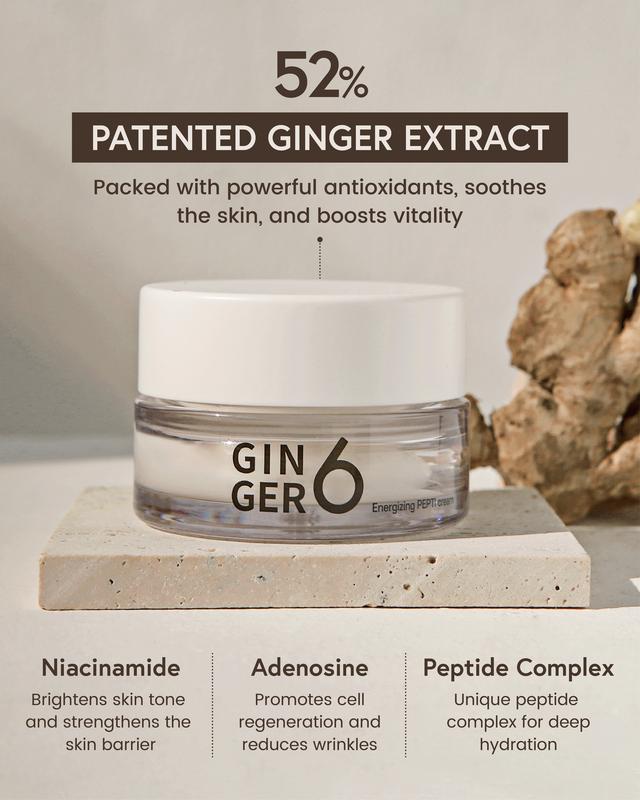 ·Ginger Water - Infused with 52% patented ginger, the PEPTI Cream utilizes ginger's natural soothing and antioxidant properties to support overall skin health, calming irritation and redness for a balanced, even complexion.