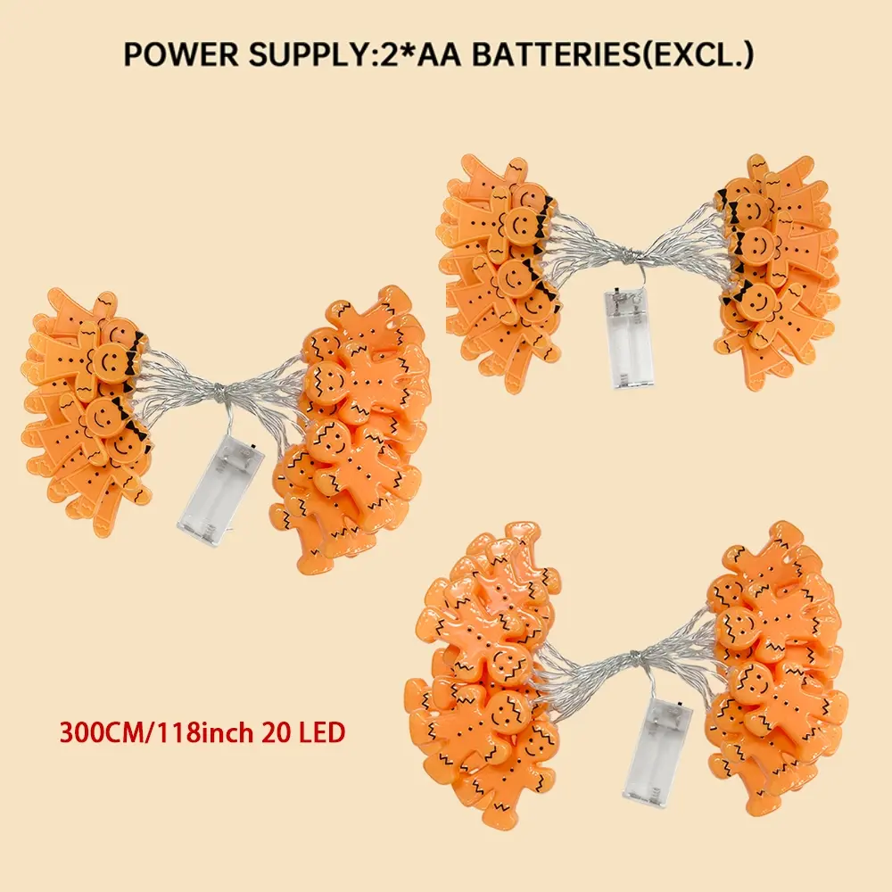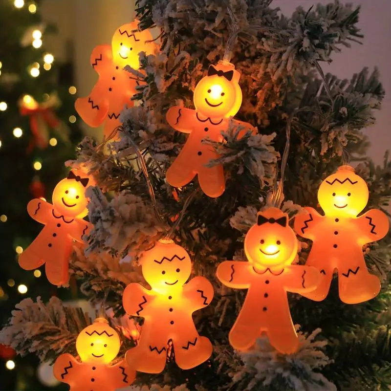 20 LED Christmas Gingerbread Man String Lights, Battery Operated (no Batteries Included), Home Decor for Bedroom Walls Doors Trees Tables Parties