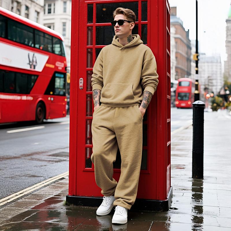 GINGTTO Men's Solid Hoodie & Sweatpants Set