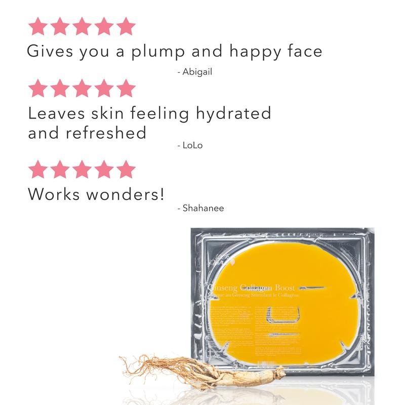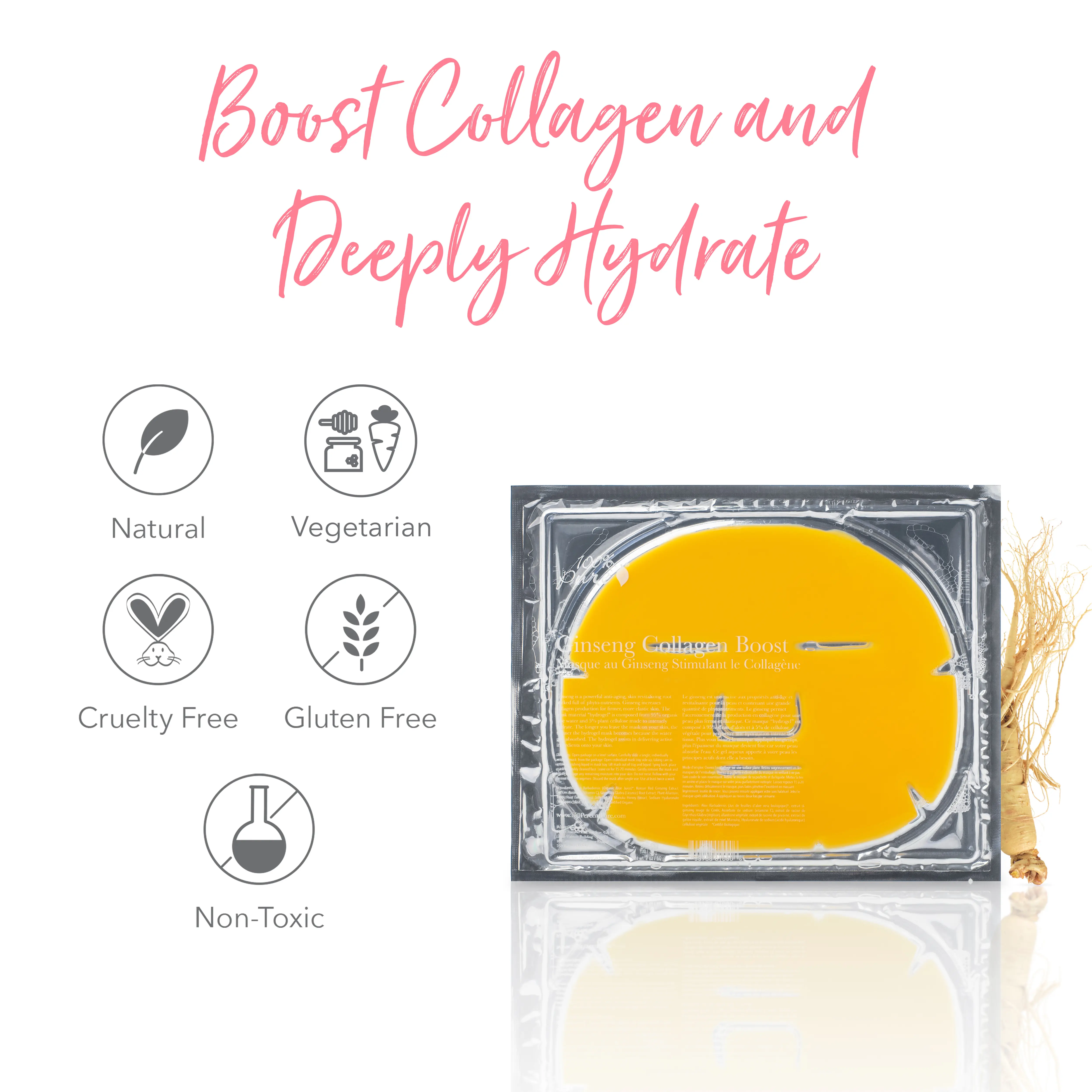 Ultra hydrating hydrogel mask stars anti-aging ginseng root, to support collagen production, enhance suppleness, and promote youthful firmness. The "hydrogel" mask material is composed of 95% organic aloe juice and 5% plant cellulose, to intensely quench and soothe skin.