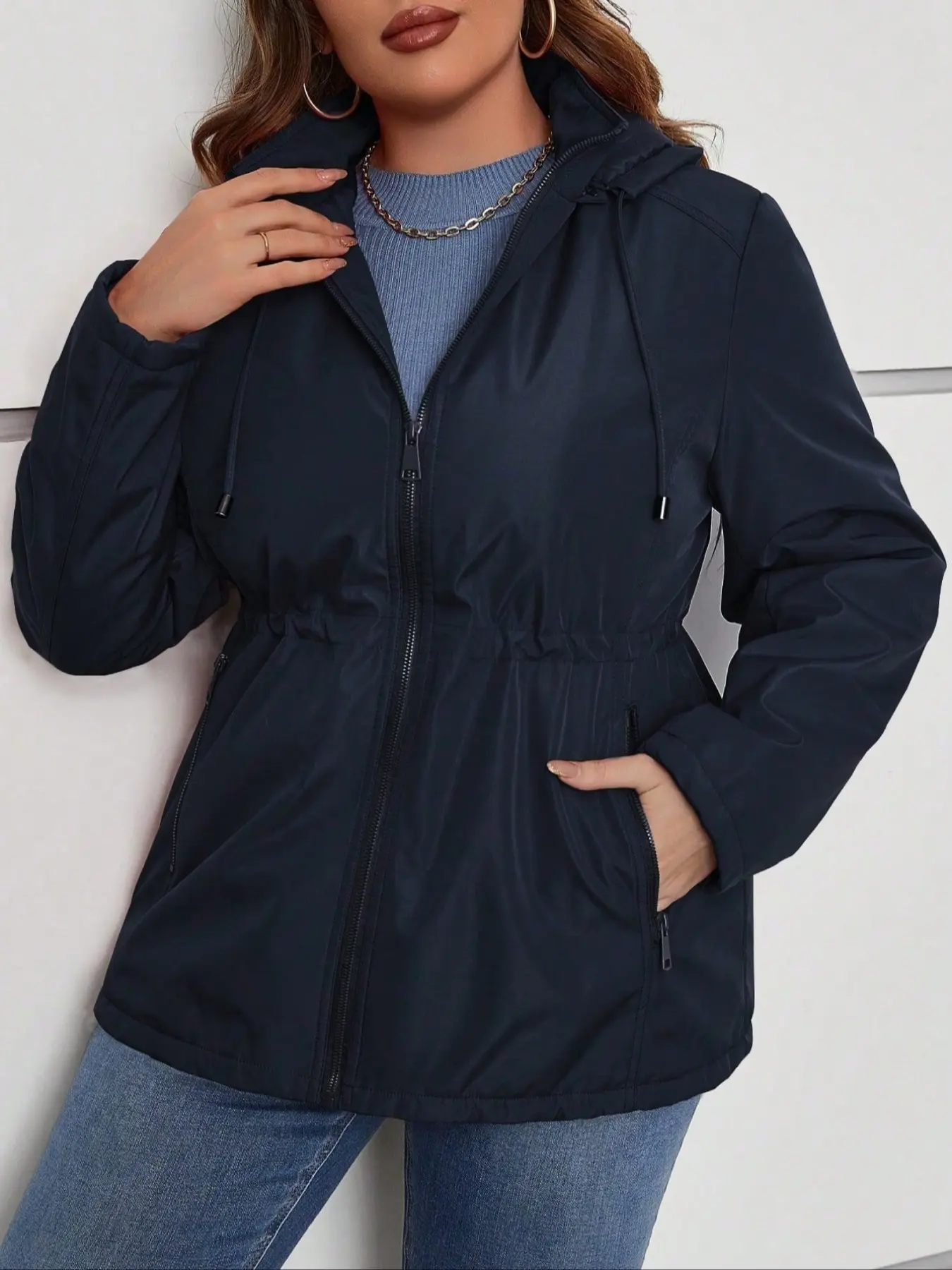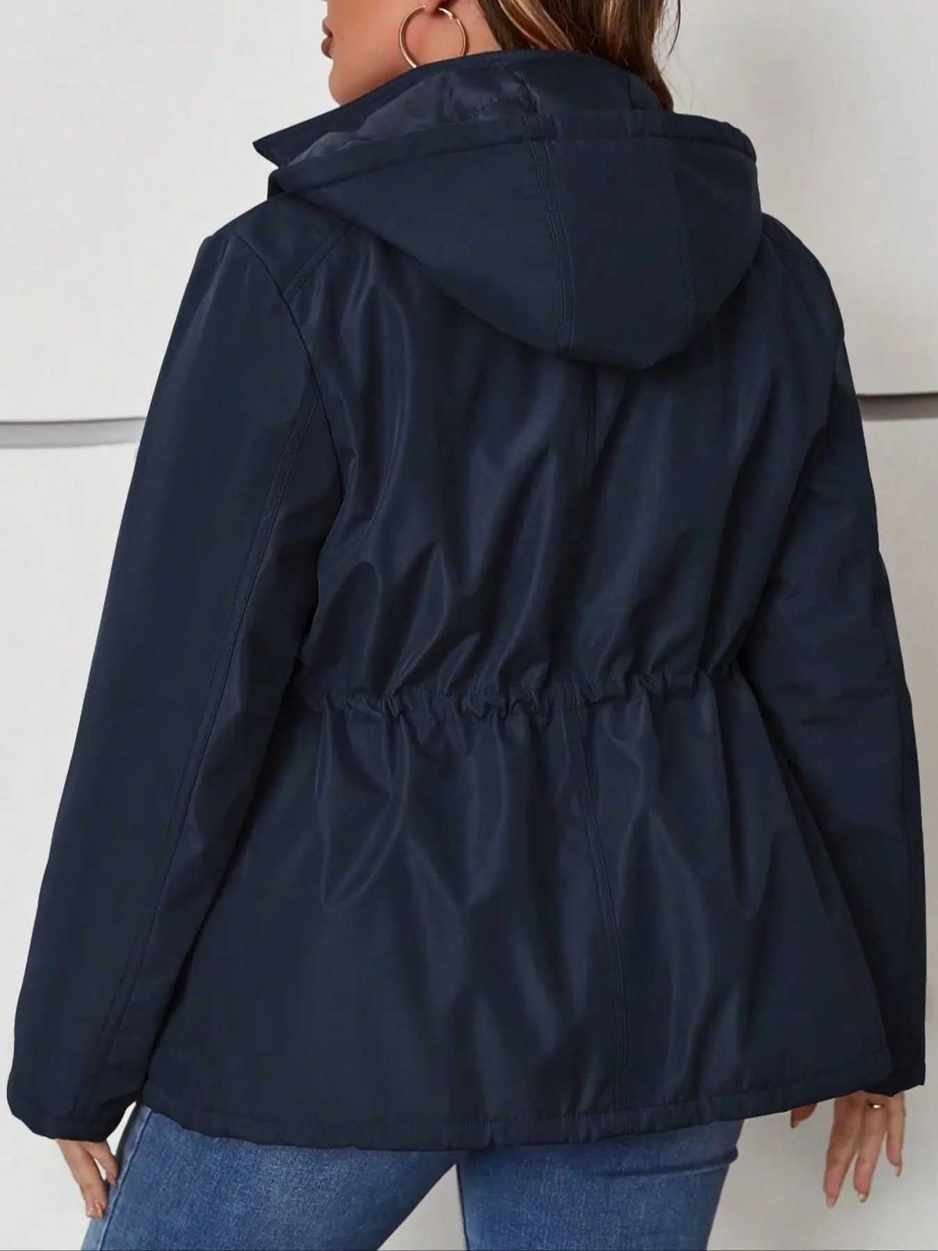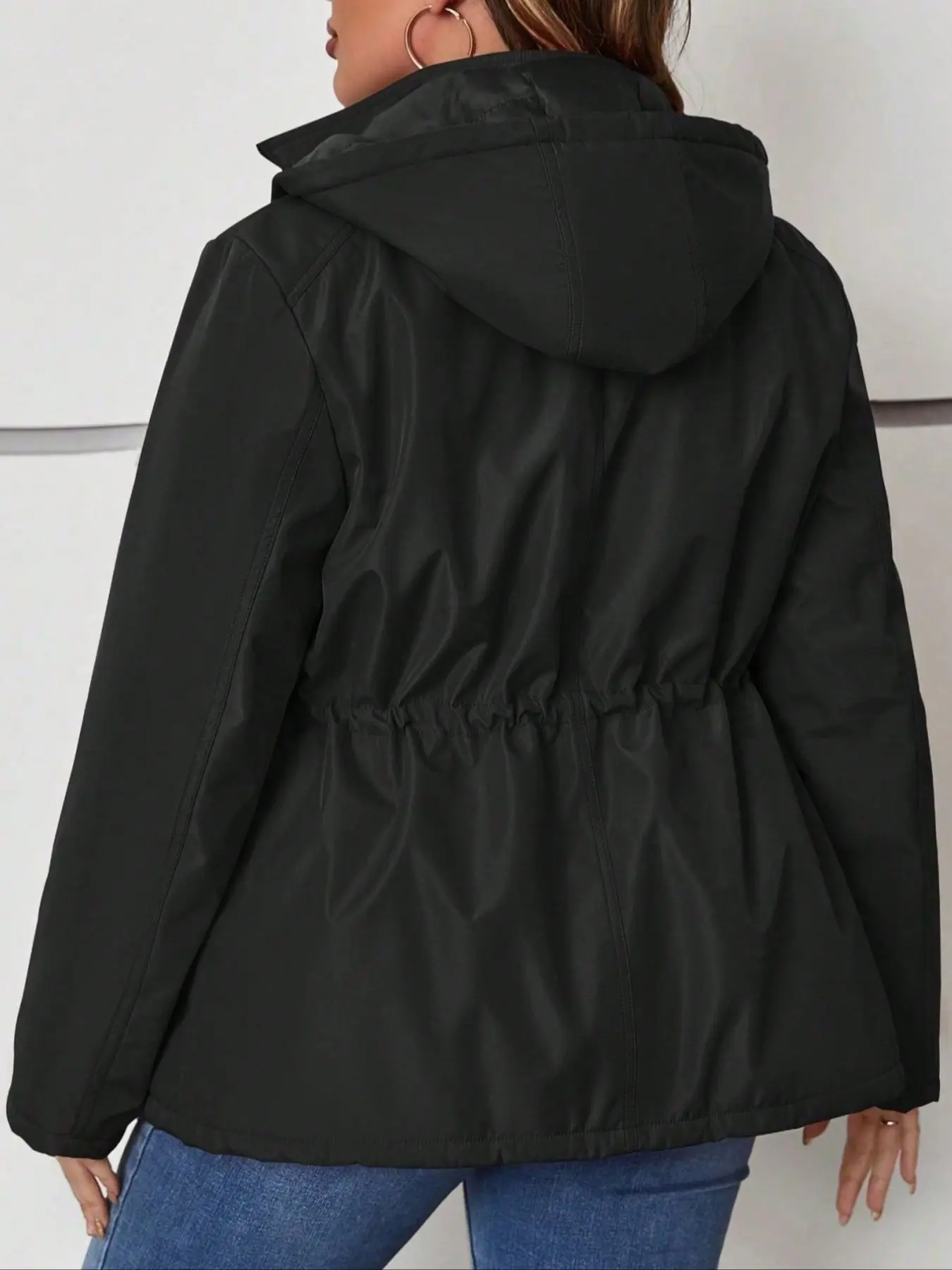 Women's Hooded Jacket with Drawstring Waist & Pockets, Casual Fitted Woven Fabric Coat for All Seasons, Warm Winter Cotton Outerwear #womenclothing #fleecelinedtightsforblackwomen #denimjacket #jeanjacket #cloudhoodie #croppedjacket #womensclothes #womenssweats #halloweenhoodieblanket #doublezipperjacket