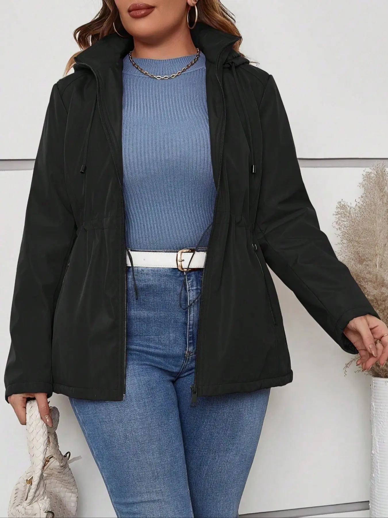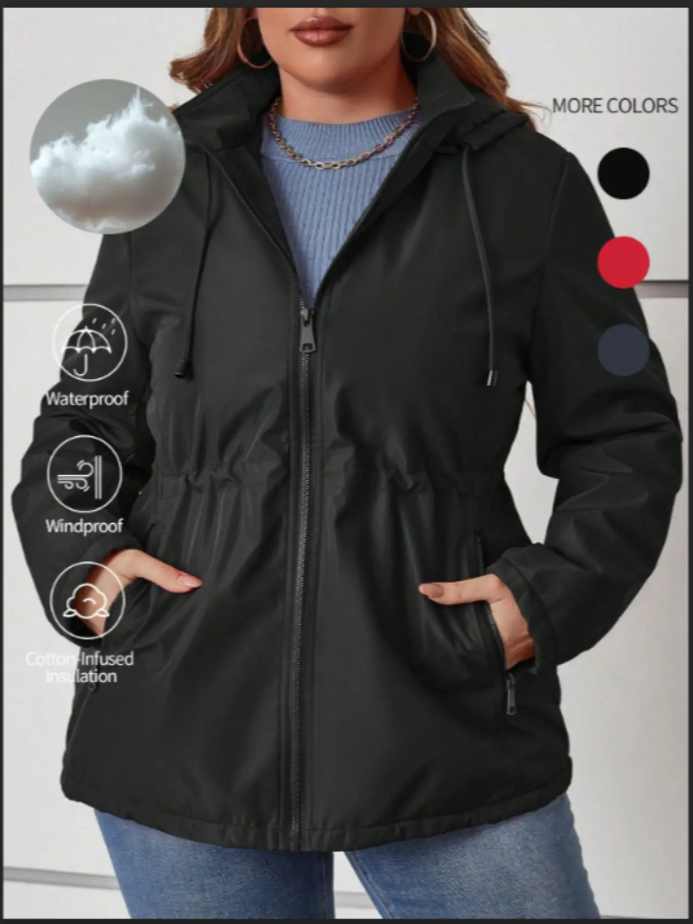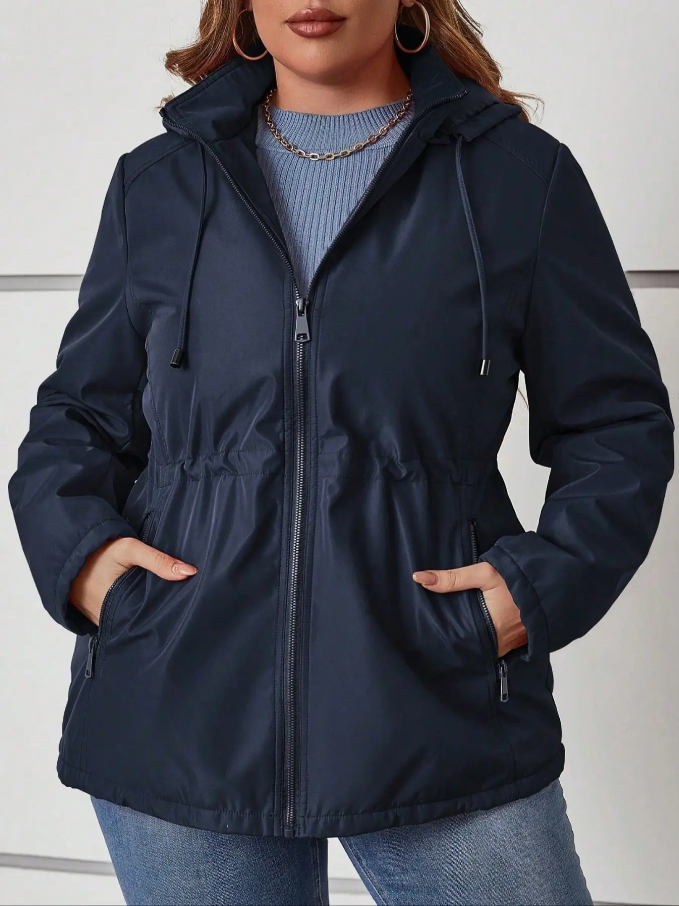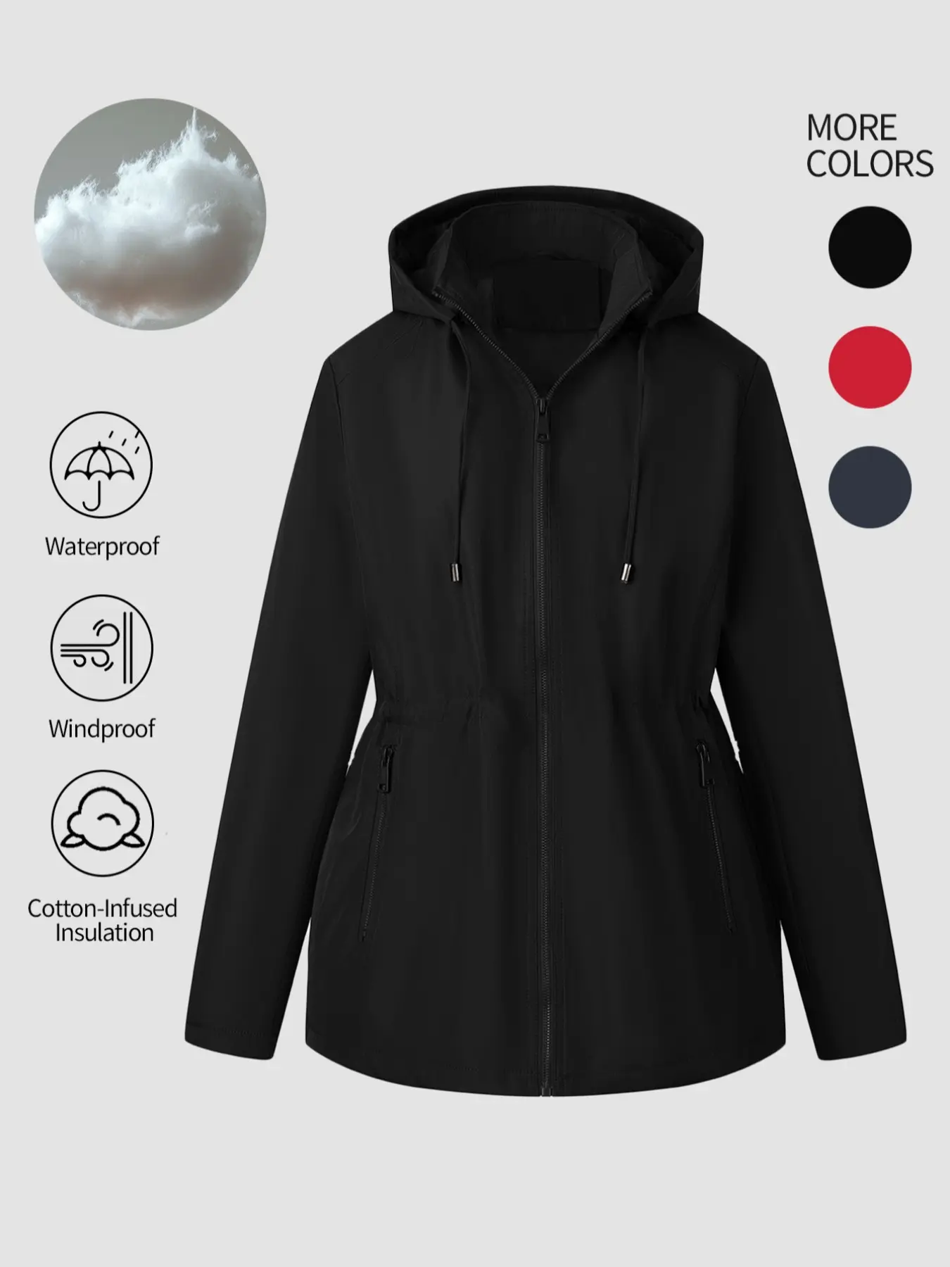 Women's Hooded Jacket with Drawstring Waist & Pockets, Casual Fitted Woven Fabric Coat for All Seasons, Warm Winter Cotton Outerwear #womenclothing #fleecelinedtightsforblackwomen #denimjacket #jeanjacket #cloudhoodie #croppedjacket #womensclothes #womenssweats #halloweenhoodieblanket #doublezipperjacket