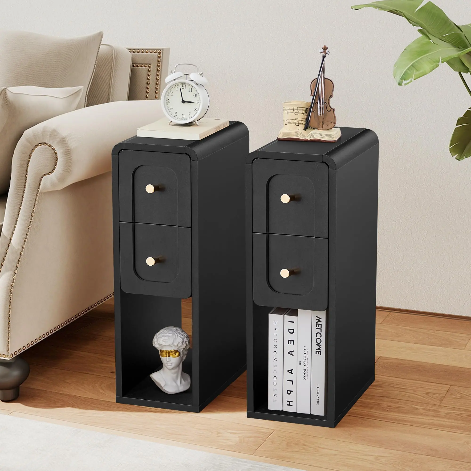 ·[Suitable for Various Rooms]: This slim end table with drawers can be used not only as a bedroom bedside table, but also as a sofa side table, coffee table, corner table. Easy to move, add decoration to the living room, bedroom, corridor or office