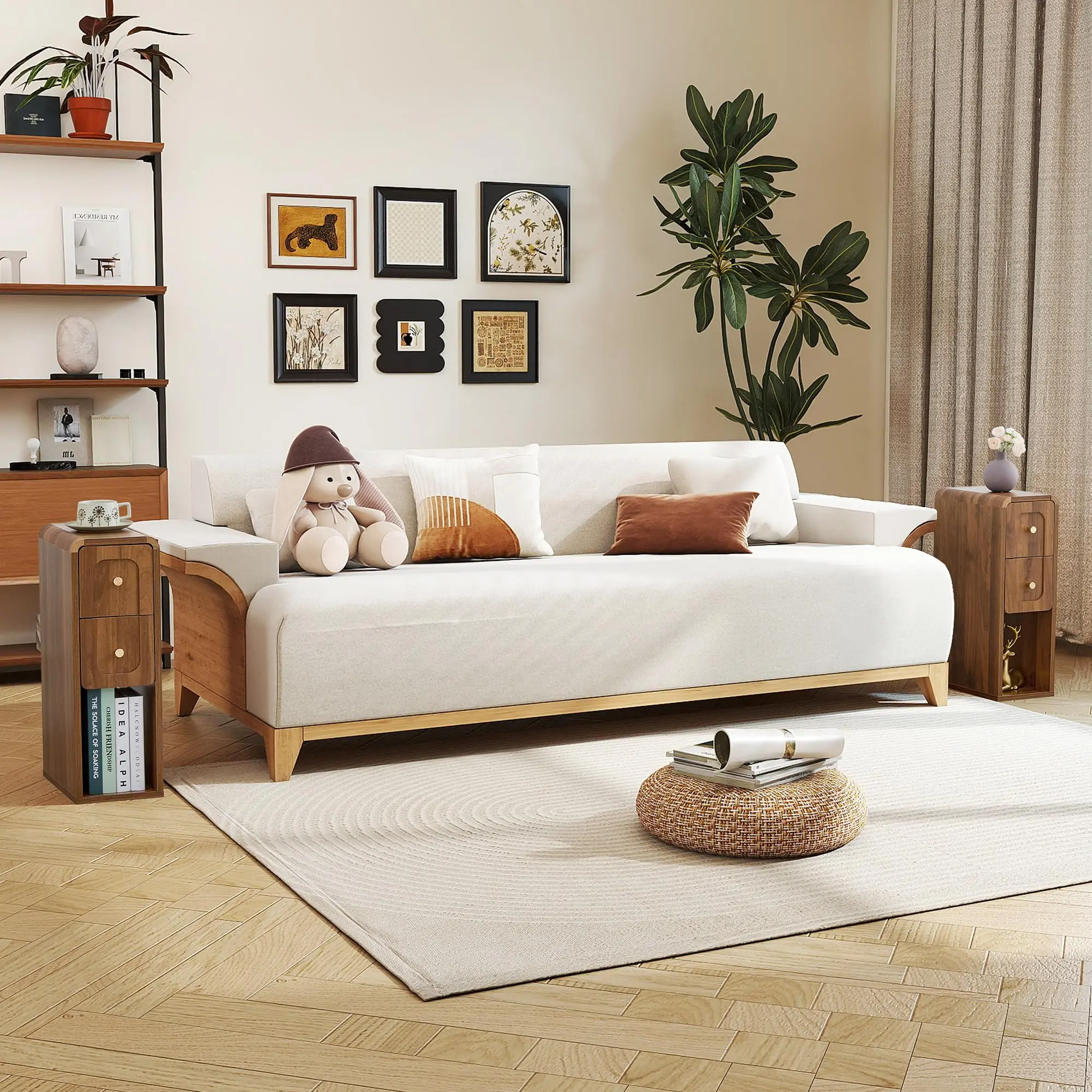 ·[Minimalist Design]: The rounded corners of the tabletop, high-quality wood grain, U-shaped drawers, and metal handles create a modern, minimalist modern slim nightstands. The clean, square design combines beauty and practicality, perfectly blending into your bedroom or living room