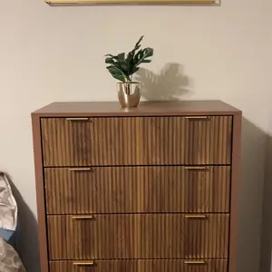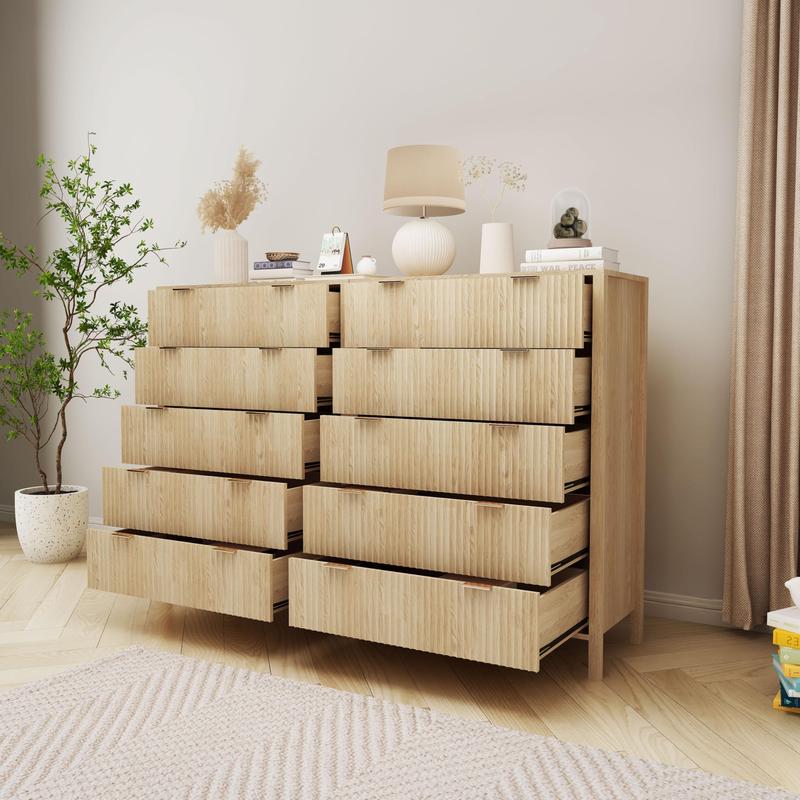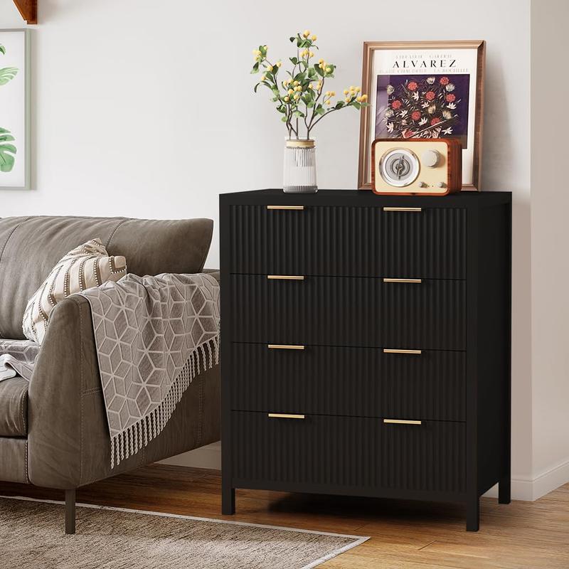 ·MODERN STYLE: The wood 4-5 drawers dressers is fabricated through a special technology, the fluted waveform panel with sleek curved profile design is unique and elegant. Complete with aluminum handles, the smooth metal guide rail allows the drawer to be pulled out and closed easily and silently. It provides the drawers with durability to last for a long time