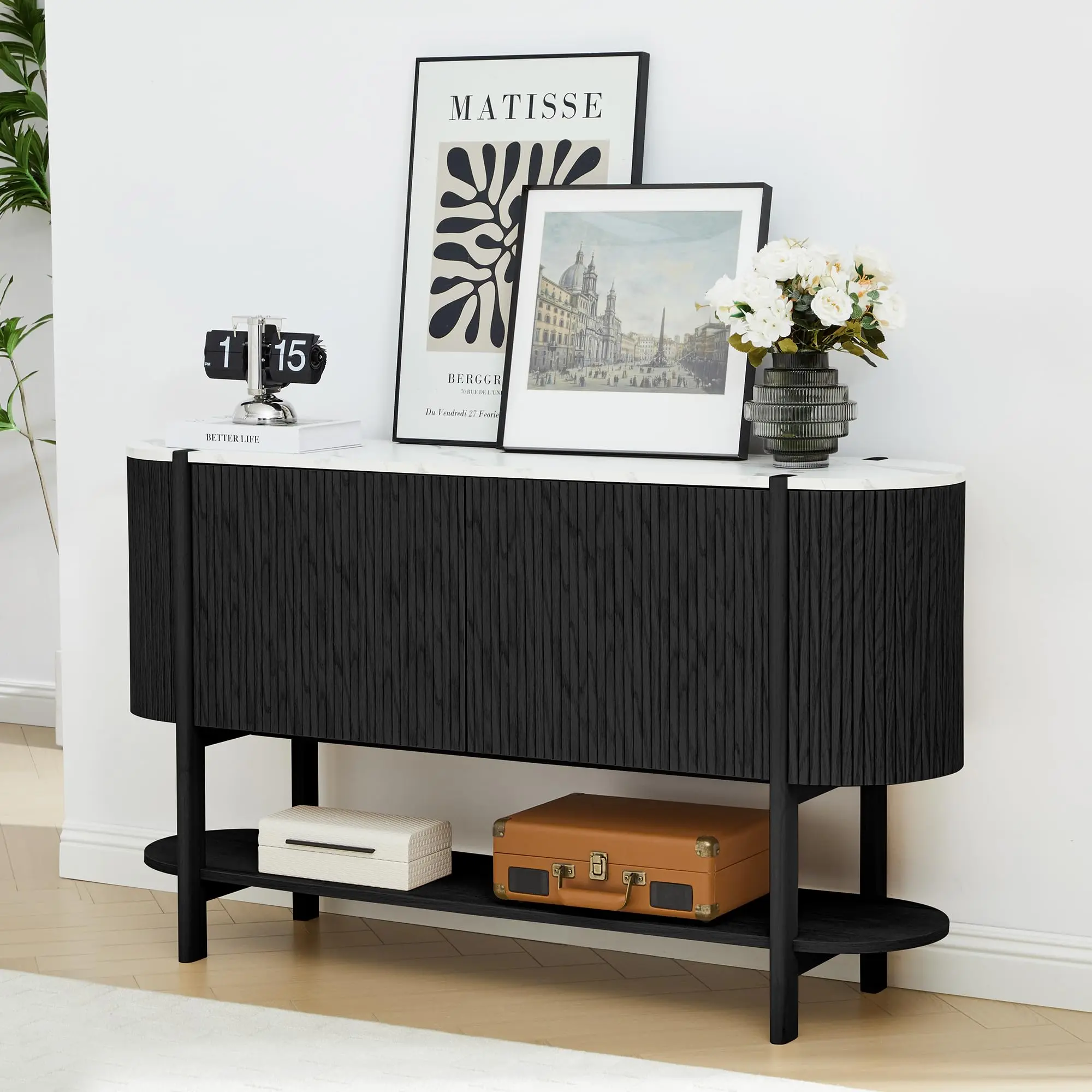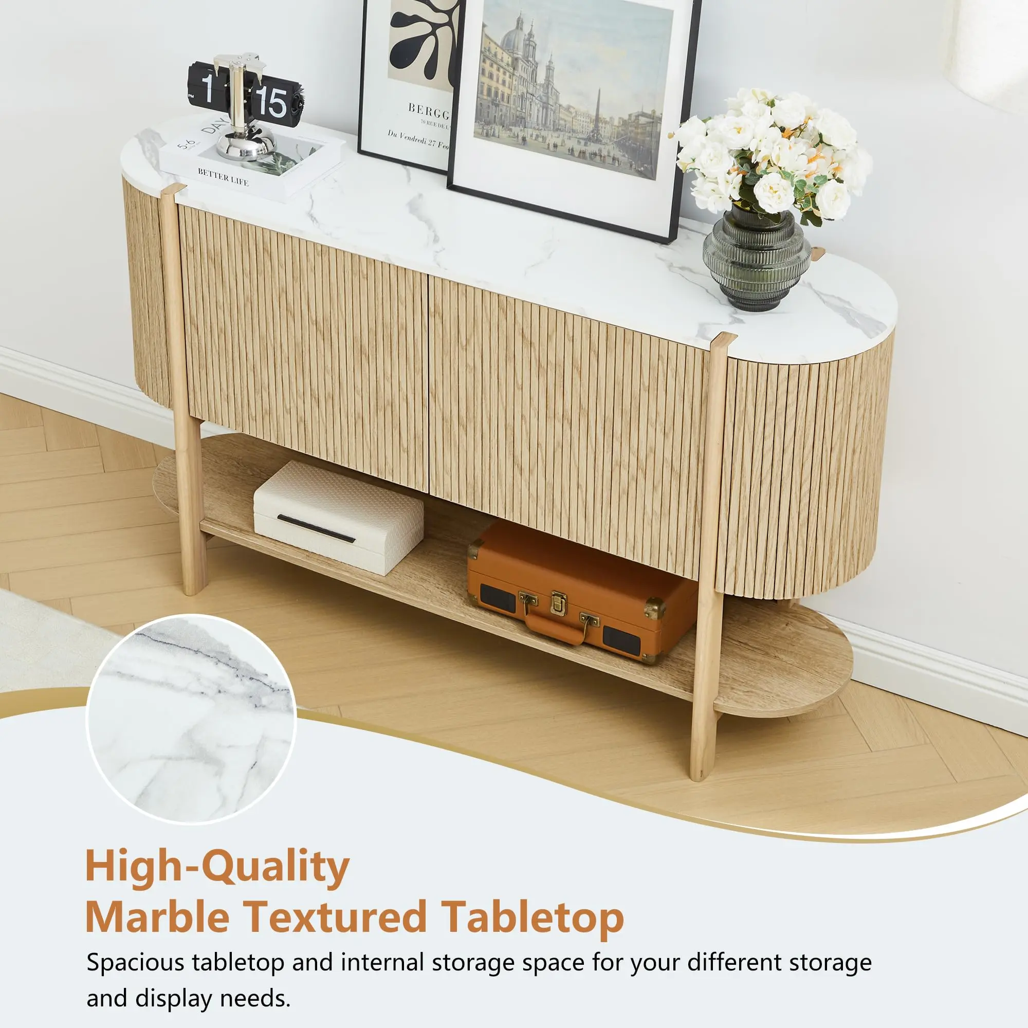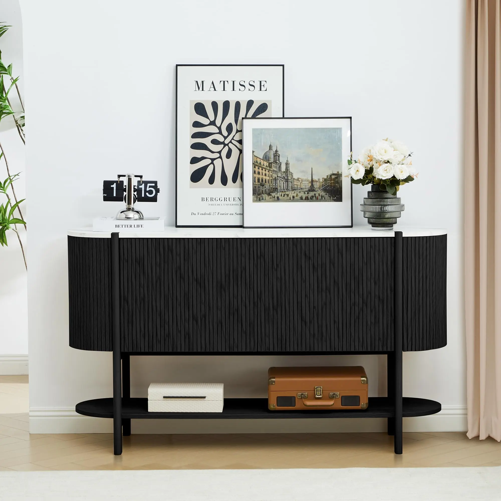 ·Modern Console Table: Elevate your living space with this long console table that serves as a beautiful accent cabinet. The fluted panel complement the curved edges and rounded legs, blending seamlessly with your home decor. The beautiful artificial marble on the tabletop blends minimalism with art, making it a versatile choice. It complements a variety of home styles, from mid-century modern to farmhouse.