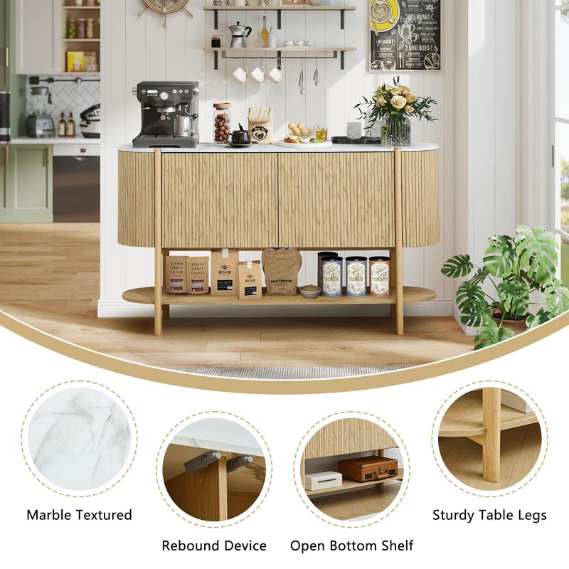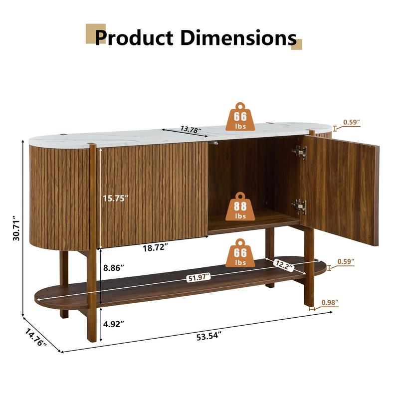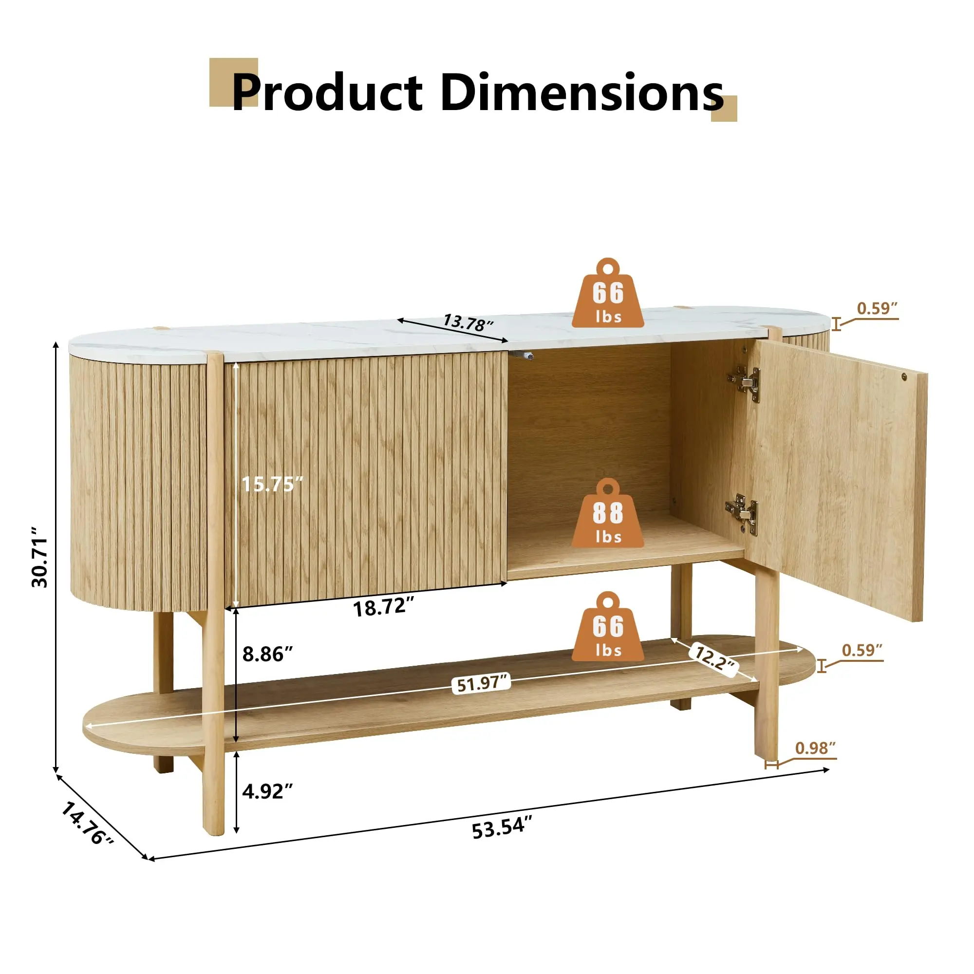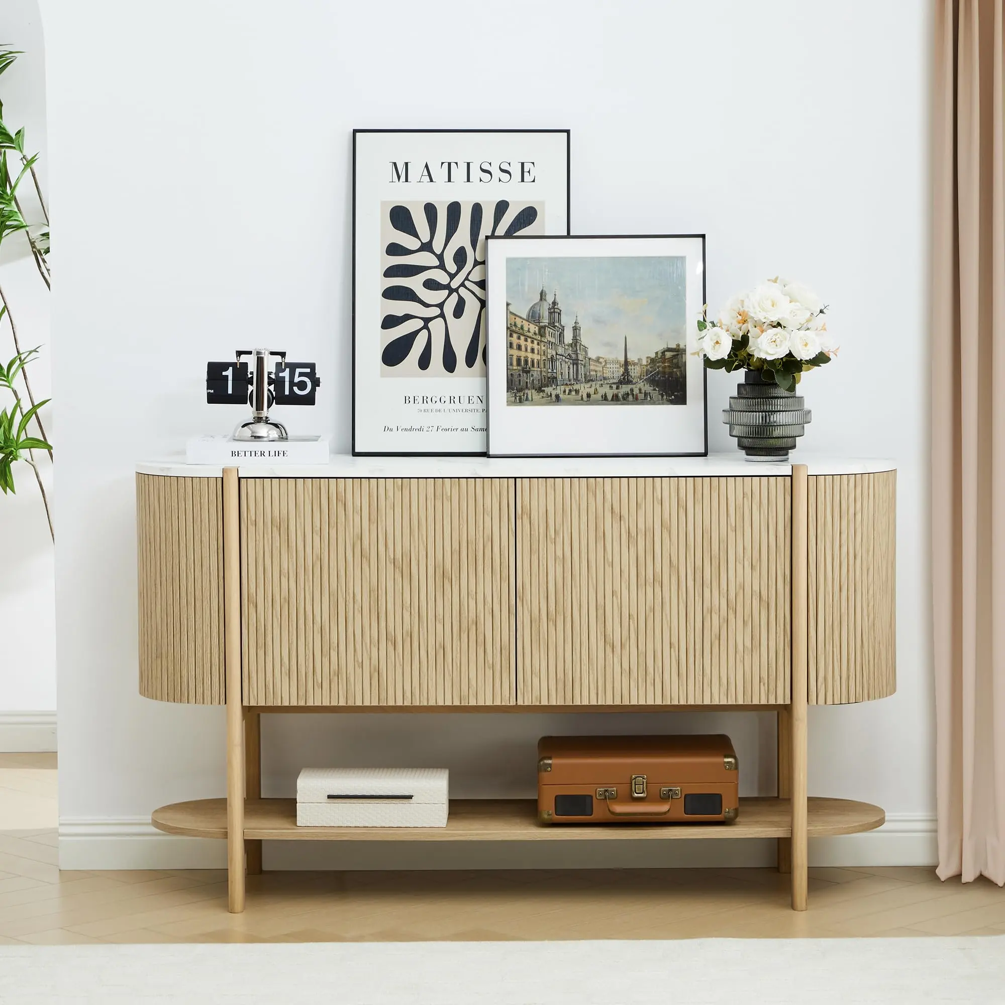 ·Modern Console Table: Elevate your living space with this long console table that serves as a beautiful accent cabinet. The fluted panel complement the curved edges and rounded legs, blending seamlessly with your home decor. The beautiful artificial marble on the tabletop blends minimalism with art, making it a versatile choice. It complements a variety of home styles, from mid-century modern to farmhouse.