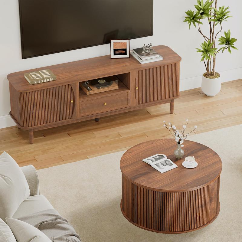 ·【Multi-functional Coffee Table】 Available in natural, walnut, and black colors, it can complements diverse styles—from modern to rustic farmhouse and cozy cottage. Its compact footprint fits small spaces, no sharp corners makes it suitable for home use. The minimalist surface and versatility ensure it harmonizes with the furniture in your living room, bedroom, apartment, serving as a chic decoration.
