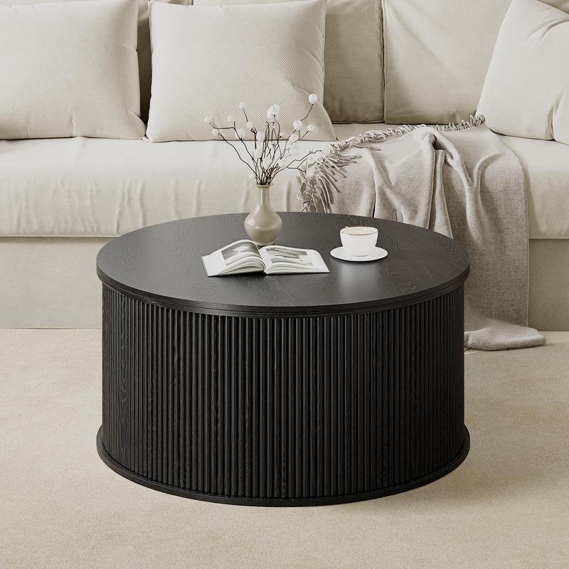 ·【Lift Top Coffee Table】 Our round lift top coffee table features a hydraulic lifting mechanism, the tabletop can be lifted freely between 15 inches and 20 inches, smooth and noiseless. It can not only be used as a coffee table, a center table in the living room, but also as a dining table, entertainment table and office table, to meet your different needs.