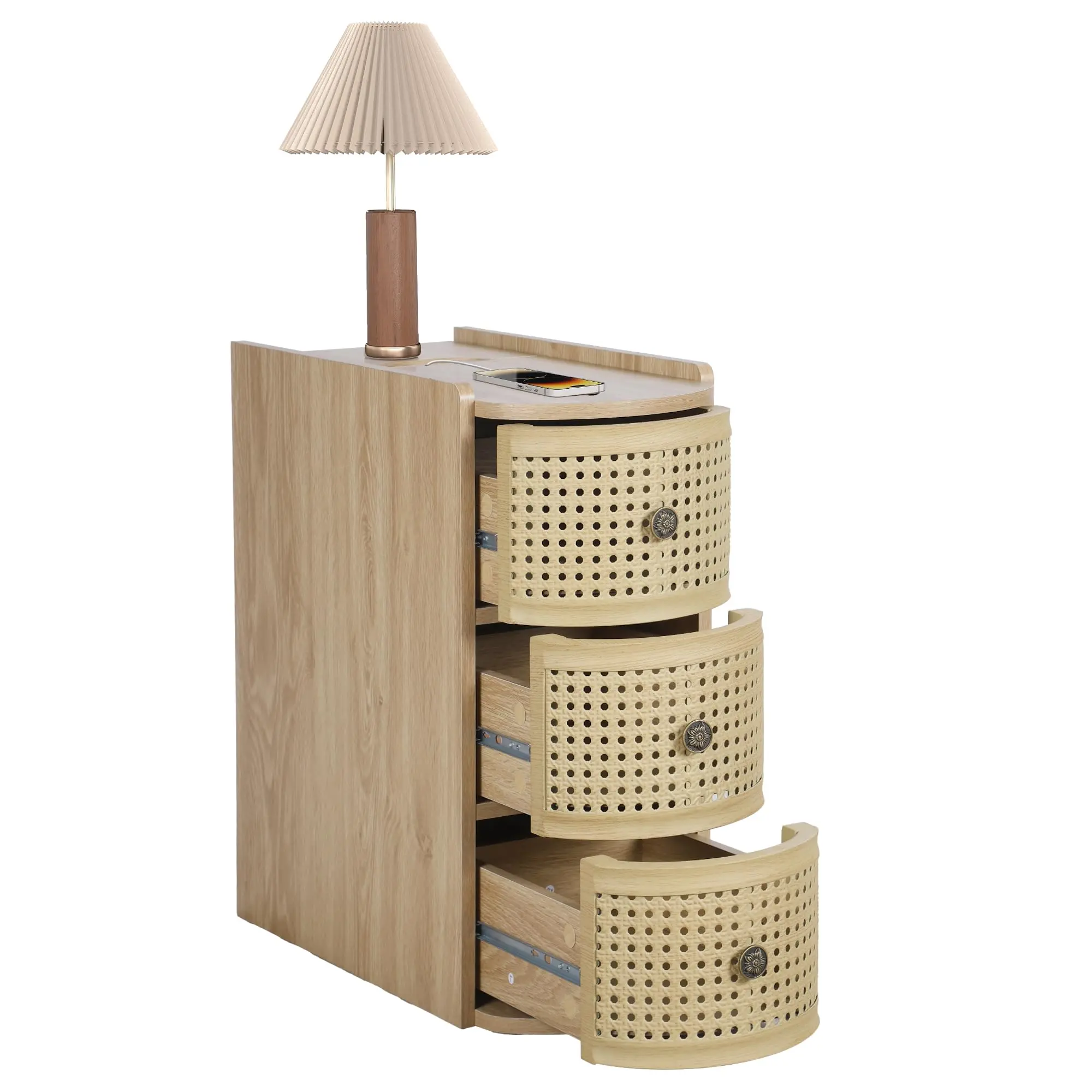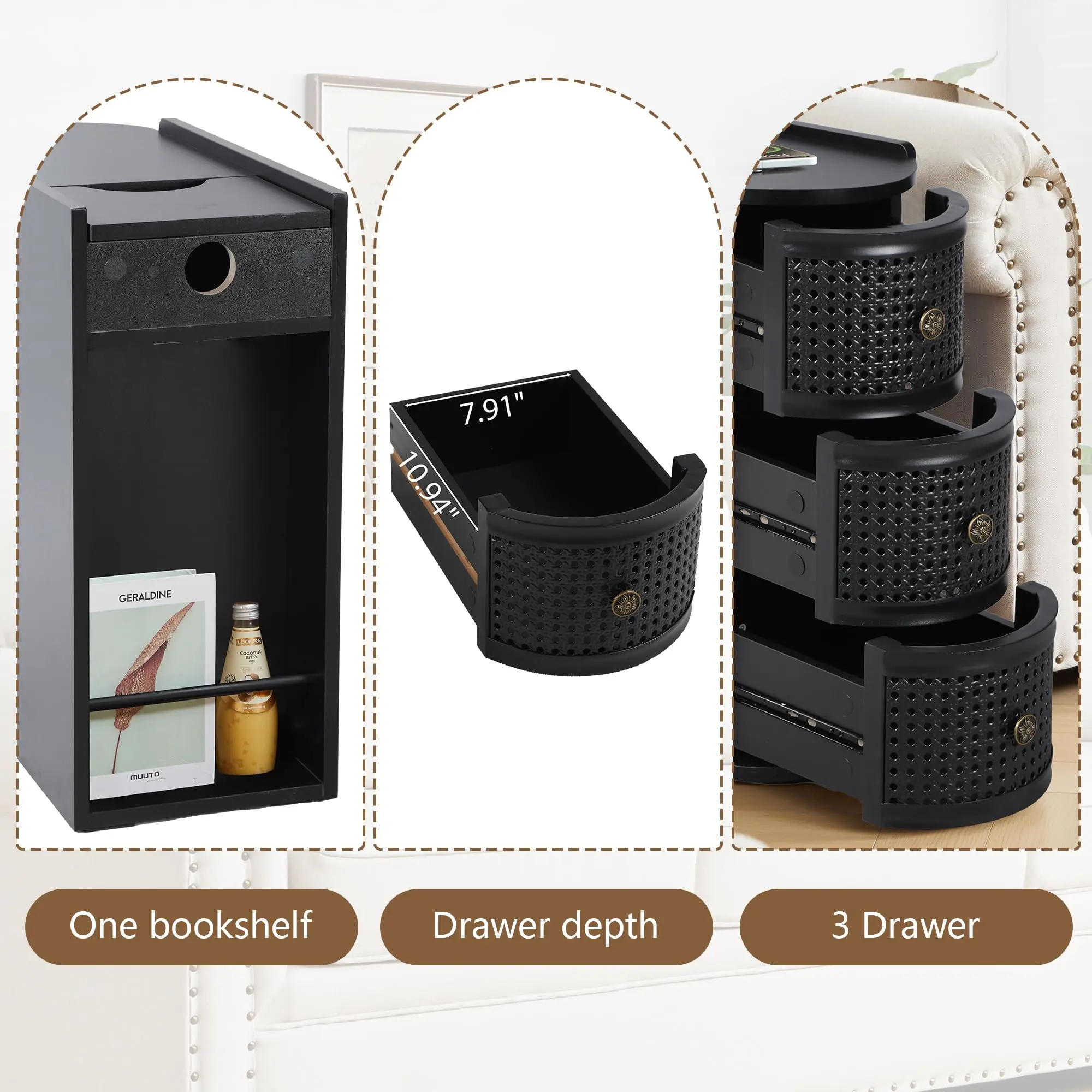 ·【Rattan Design】 The drawer panels of this narrow end table are designed with Metal textures, making the entire cabinet look more stylish and compatible with your various furniture styles. You can place it in the living room, bedroom and other scenes.