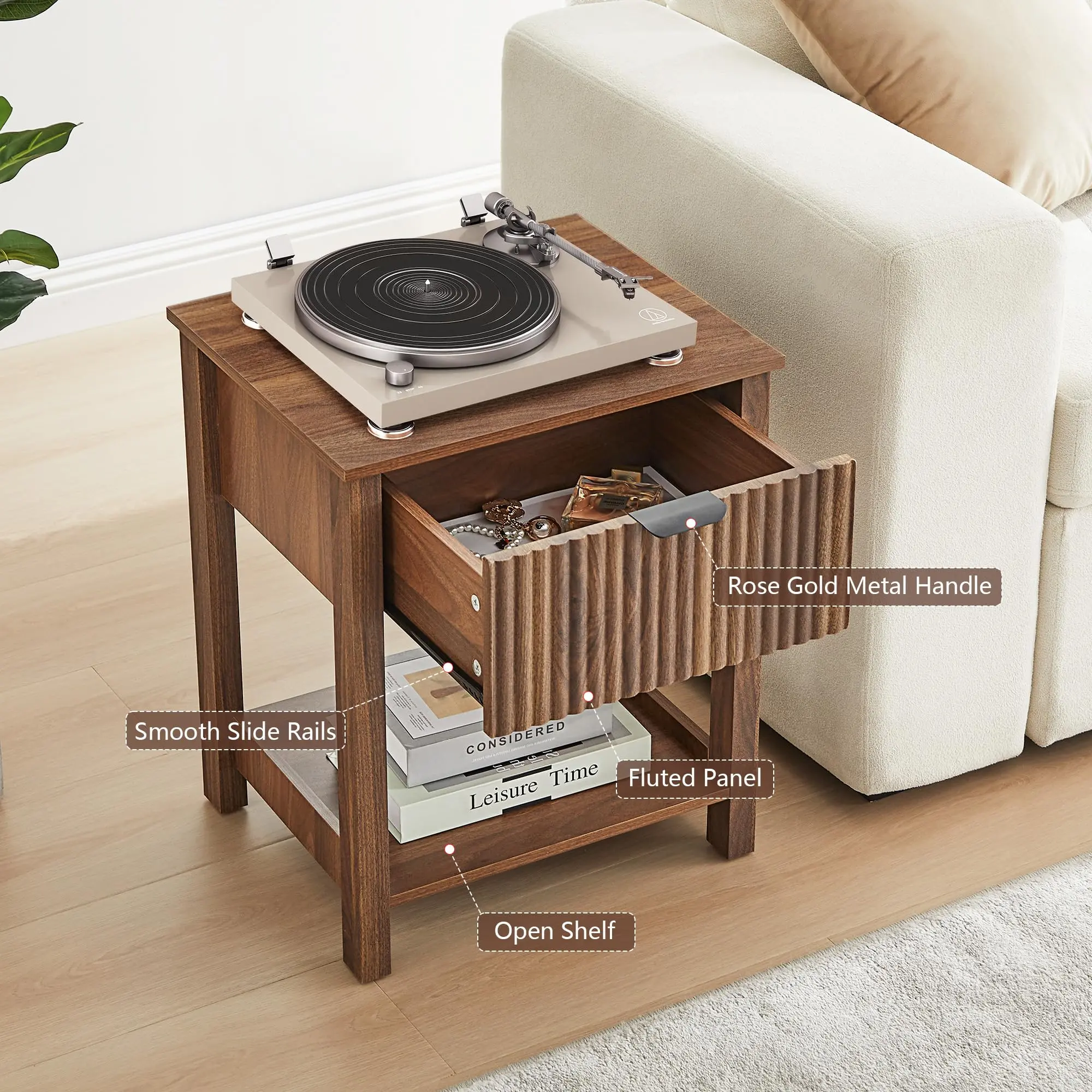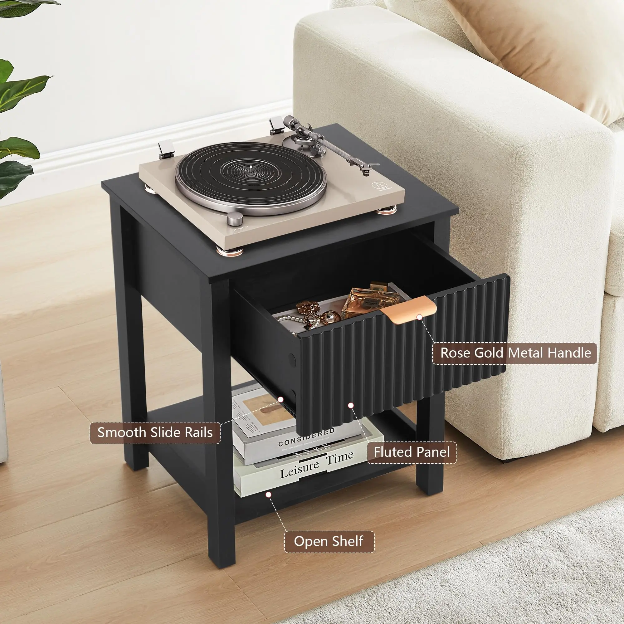 ·【Nighstand with Drawer】1 closed drawer for sorted storage, increased storage space, dust-proof and moisture-proof. The beside table provides you with large space to place your bedside essentials, like books, remote control, and glasses, keeping your end table organized. And the spacious top lets you show off a lamp, artful accent, or framed family photo to add warmth. Besides, upgraded silent guides for smooth operation.
