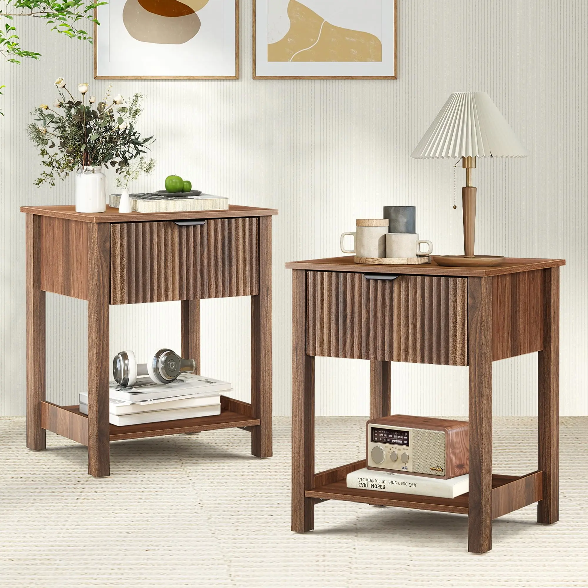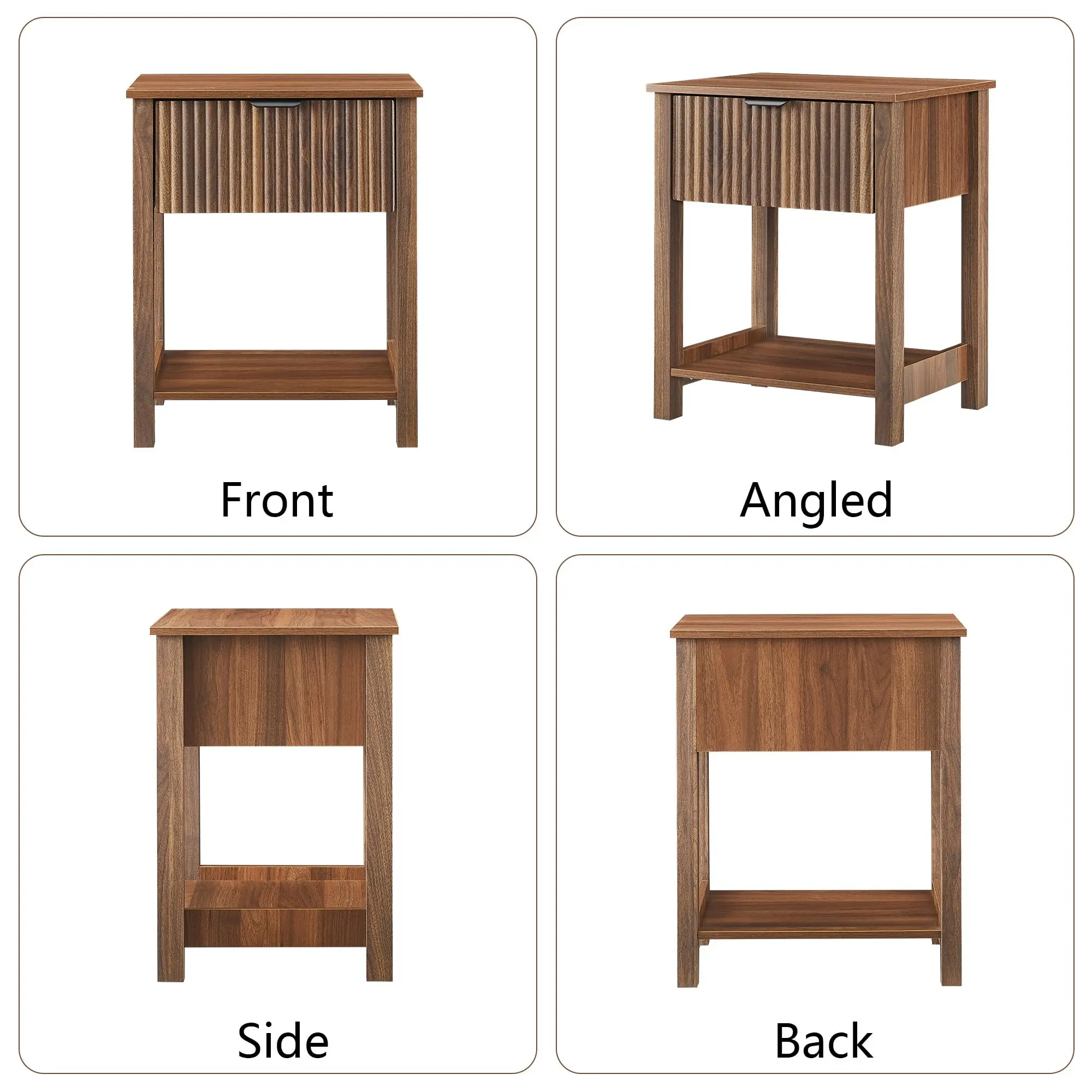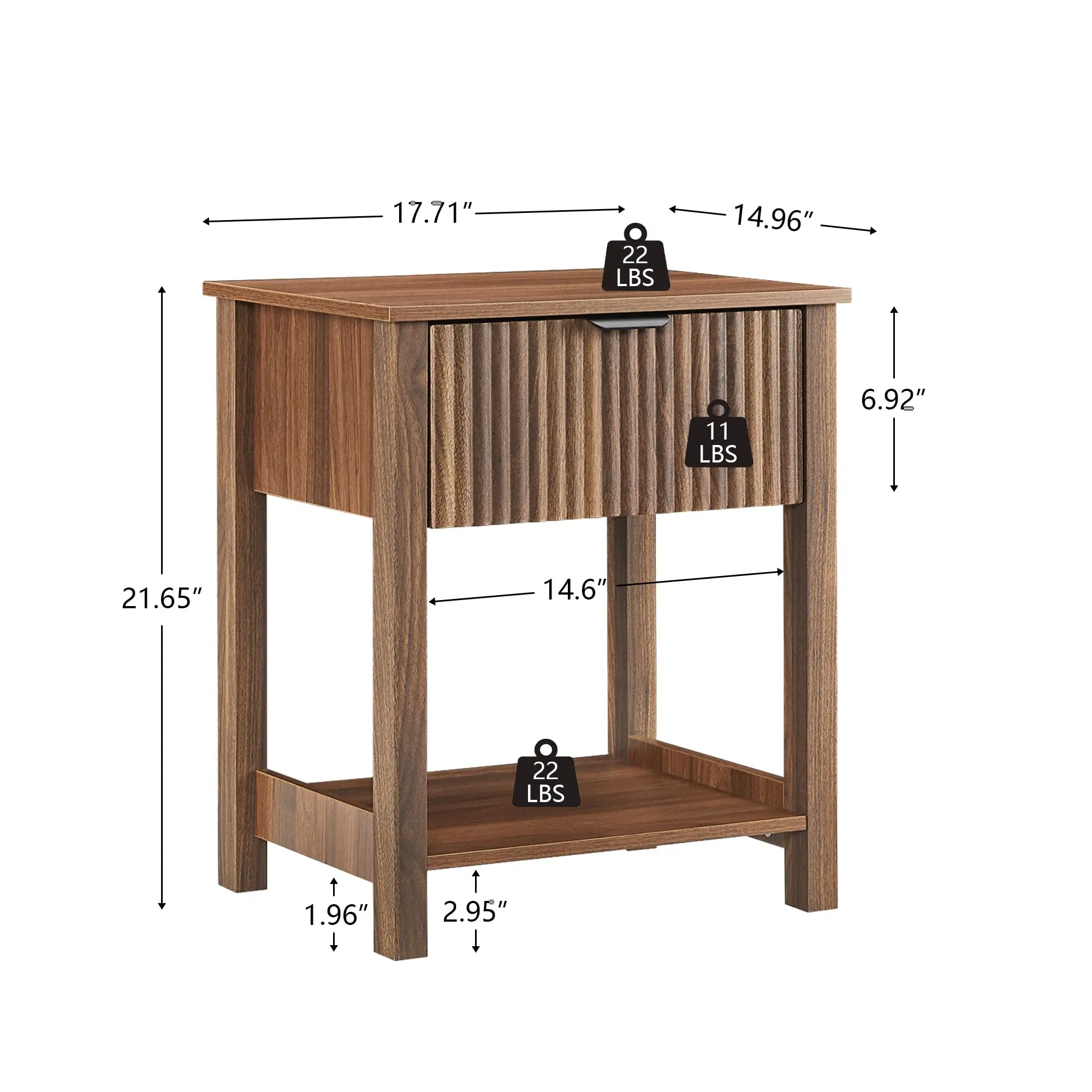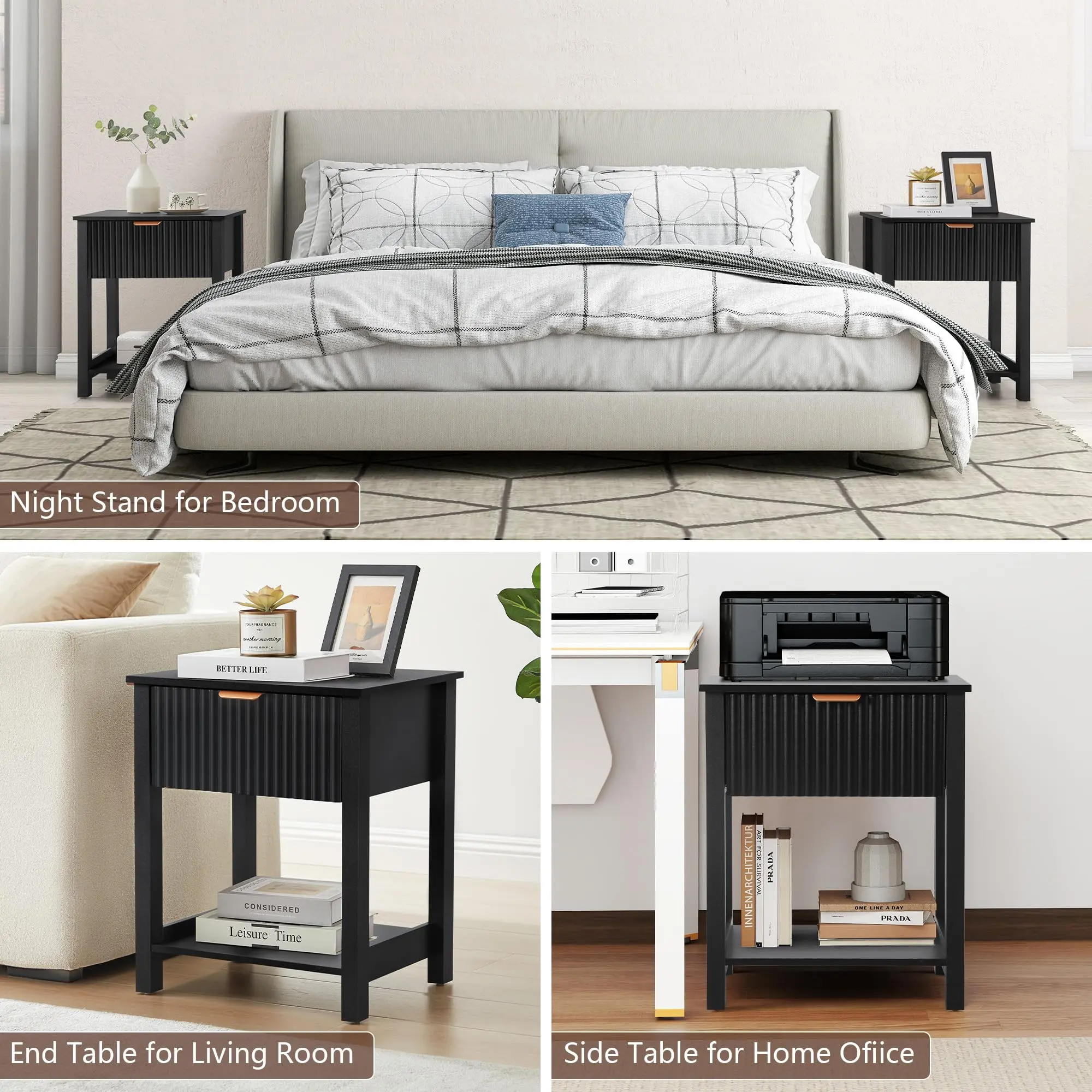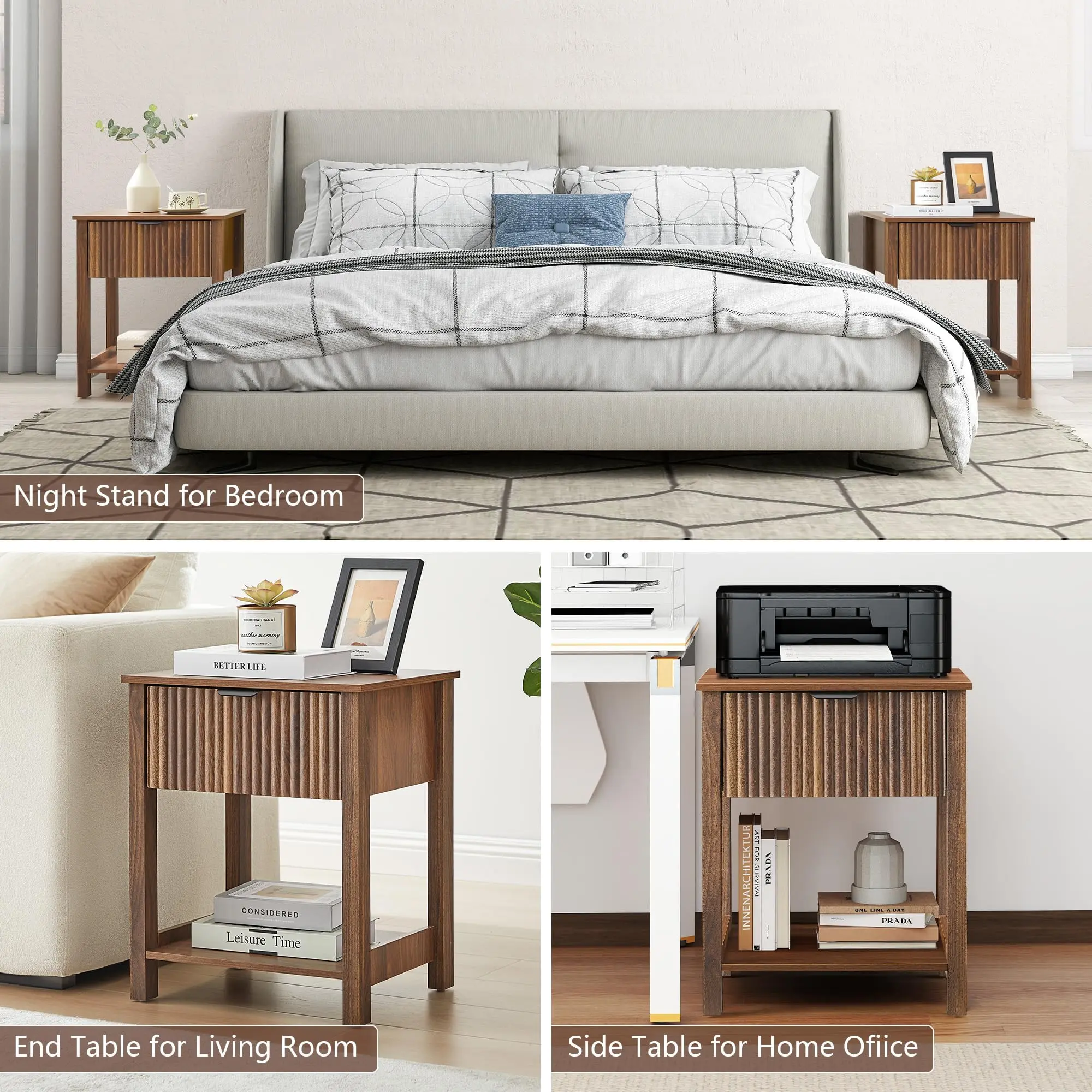 ·【Mid Century Modern Nightstand】Mid-century modern design and traditional style come together perfectly in this farmhouse small nightstand. Different from other line pattern design of the nightstand, our drawer engraving surface depth of 50mm, so that it looks more 3D, three-dimensional, aesthetic. The streamlined overall table body with sharp corners strengthens the lovely atmosphere of this night stand.