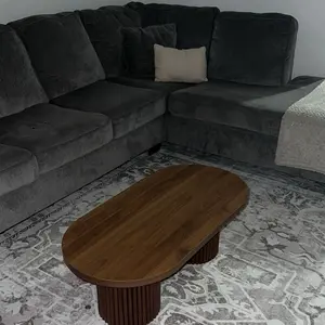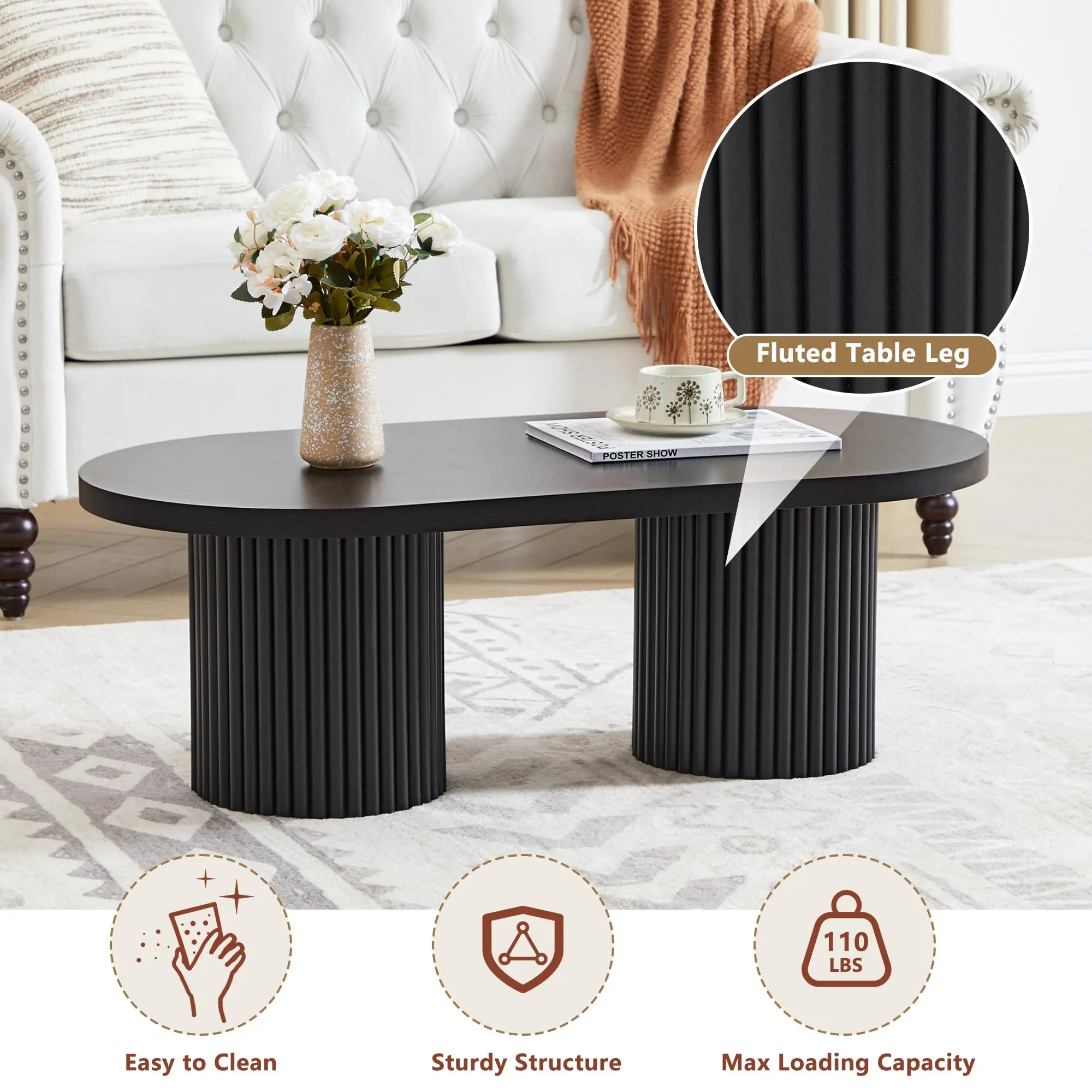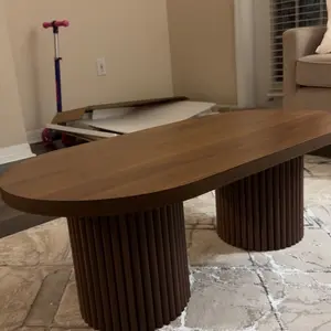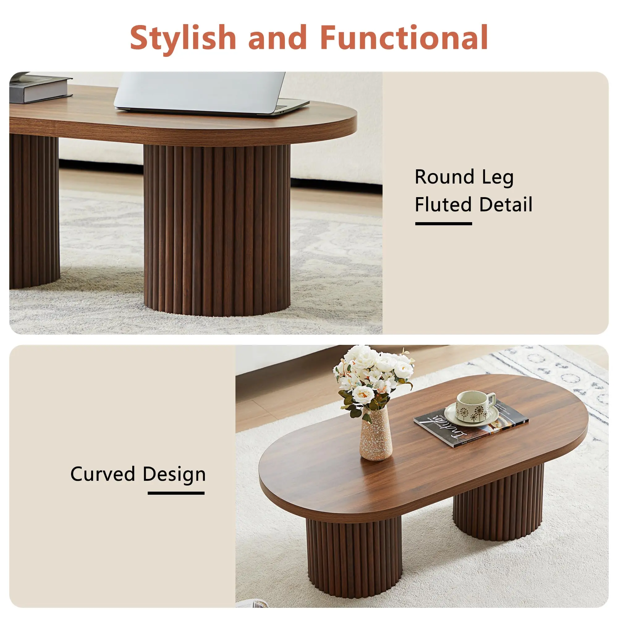 ·Boho Coffee Table: This oval wooden coffee table blends boho and mid-century modern styles, featuring a natural wood finish that adds warmth and charm. The fluted cylindrical legs and minimalist curved design make it an elegant farmhouse coffee table for living rooms, apartments, offices, and lounge areas.