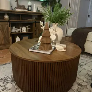 Great coffee table! I have a small sized living room and this fit perfectly. The material quality is fairly good for the price you’re paying. I love the storage in the middle, I already got my blankets and heated blankets in there. Highly recommend, most especially if you have a small living room.
