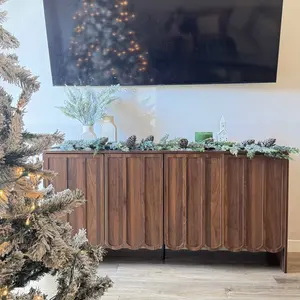 ·The farmhouse wooden four-door storage cabinet is designed with a wave panel, which makes the cabinet more stylish and has a large storage capacity to meet your daily storage needs.