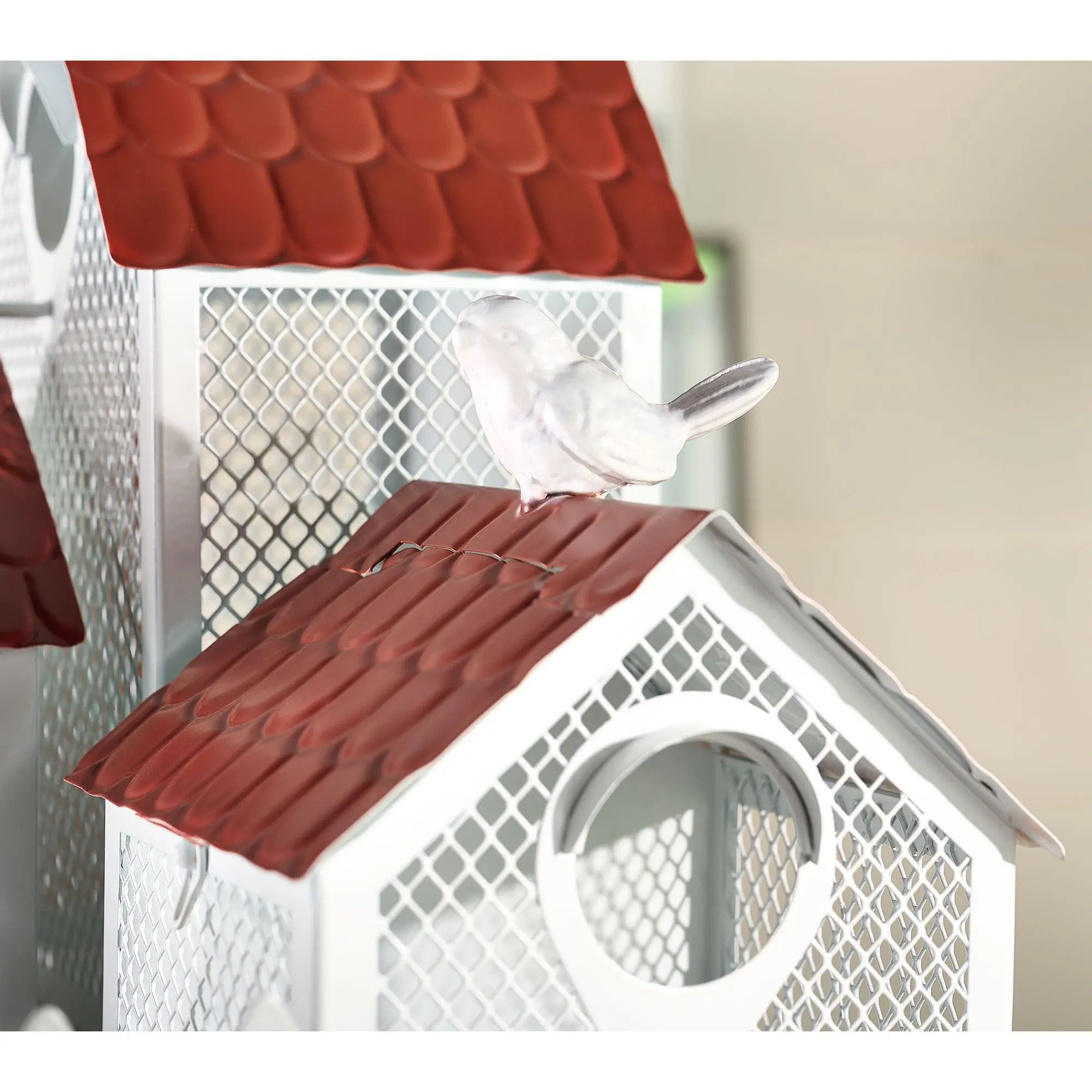 Your very own bird B&B! Provide feathered friends with a place to perch and fuel up with this feeder colony. Its mesh structure ensures good airflow, keeping it cool for your birdie besties. The hinged roofs make it incredibly easy to clean and refill with bird food. From Girl Next Door.