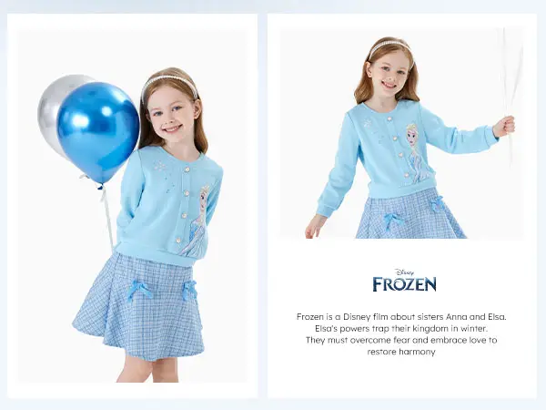 ✨ Transform your little one into Elsa with this 2-piece set! It includes a pearl button knit top and a tweed skirt. Both pieces are inspired by Elsa, adding a magical touch to your child's wardrobe. Perfect for Disney fans who want their kids to look fashionable. This TikTok Shop exclusive ensures a unique style for your child.