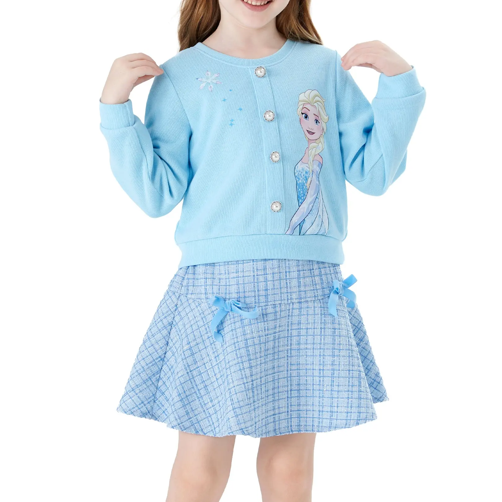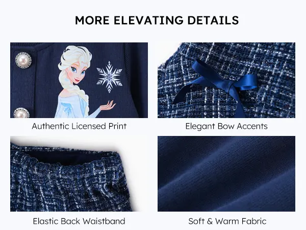 5. PatPat Disney Frozen Toddler Girl 2pcs Elsa Cotton Top with Tweed Bowknot Skirt Set Deep Blue Pearl Button Knit Top & Tweed Skirt Set for Children Fine Girls Outfit Casual Set,SprIngGIowUp ,RefreshedLook