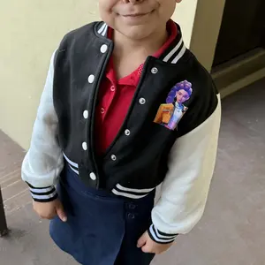 Girls' Short Baseball Jacket Coat, Cartoon Design, Elastic Fabric, Fitted Style, Collared Jacket, Fall & Winter School Uniform Outerwear