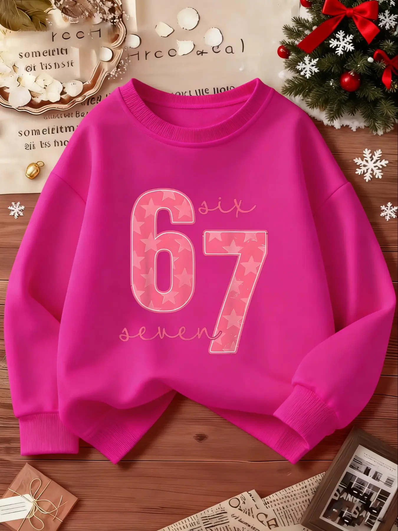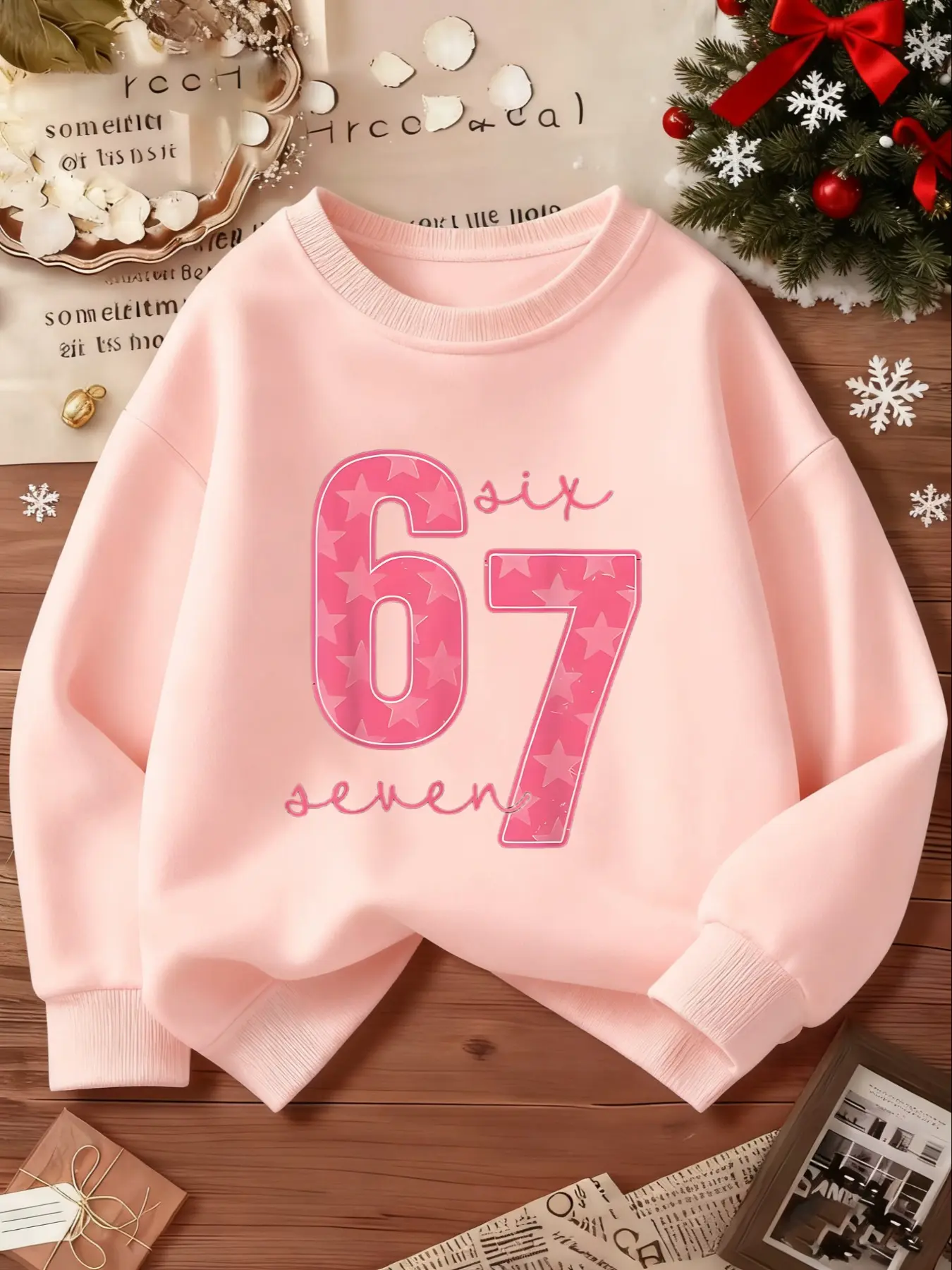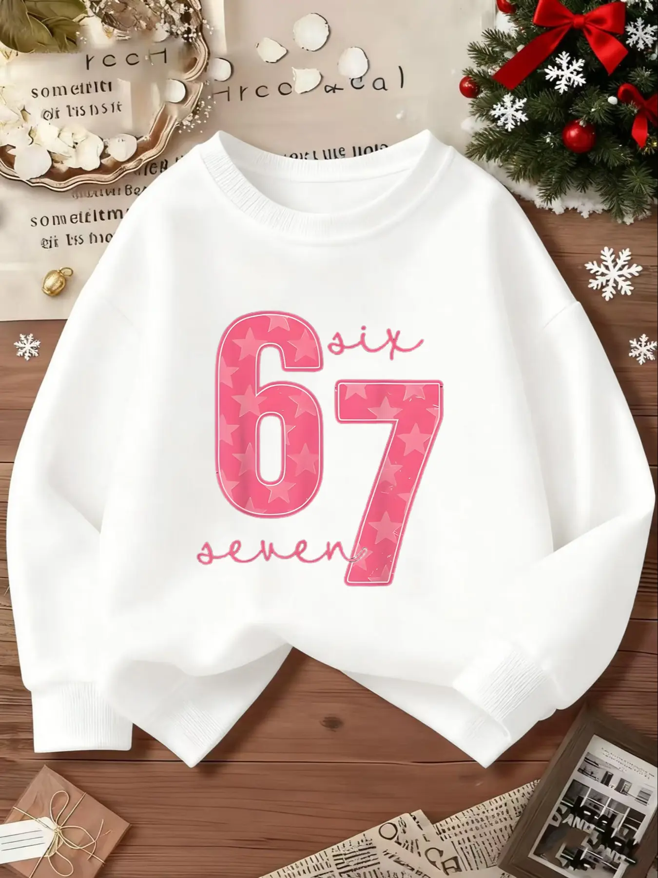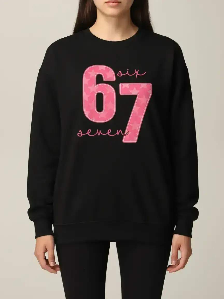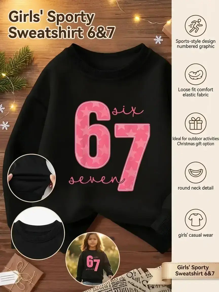 SIX SEVEN Girls' Casual Round Neck Loose Fit Sporty Sweatshirt, Casual Pullover Tops, Elastic Fabric, Christmas Gift, Number 6 and 7 Design, Outdoor & Indoor Activities