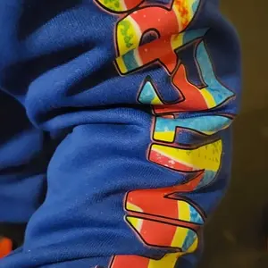 Size runs a size or two smaller in US sizes than what sizes state. My daughter generally wears a size 7/8 and I ordered a 11/12 for it to be baggy, but it is barely fitting now, if not too small There was a small snag on the front of the sweatshirt when received. Materials is soft and decent weight.