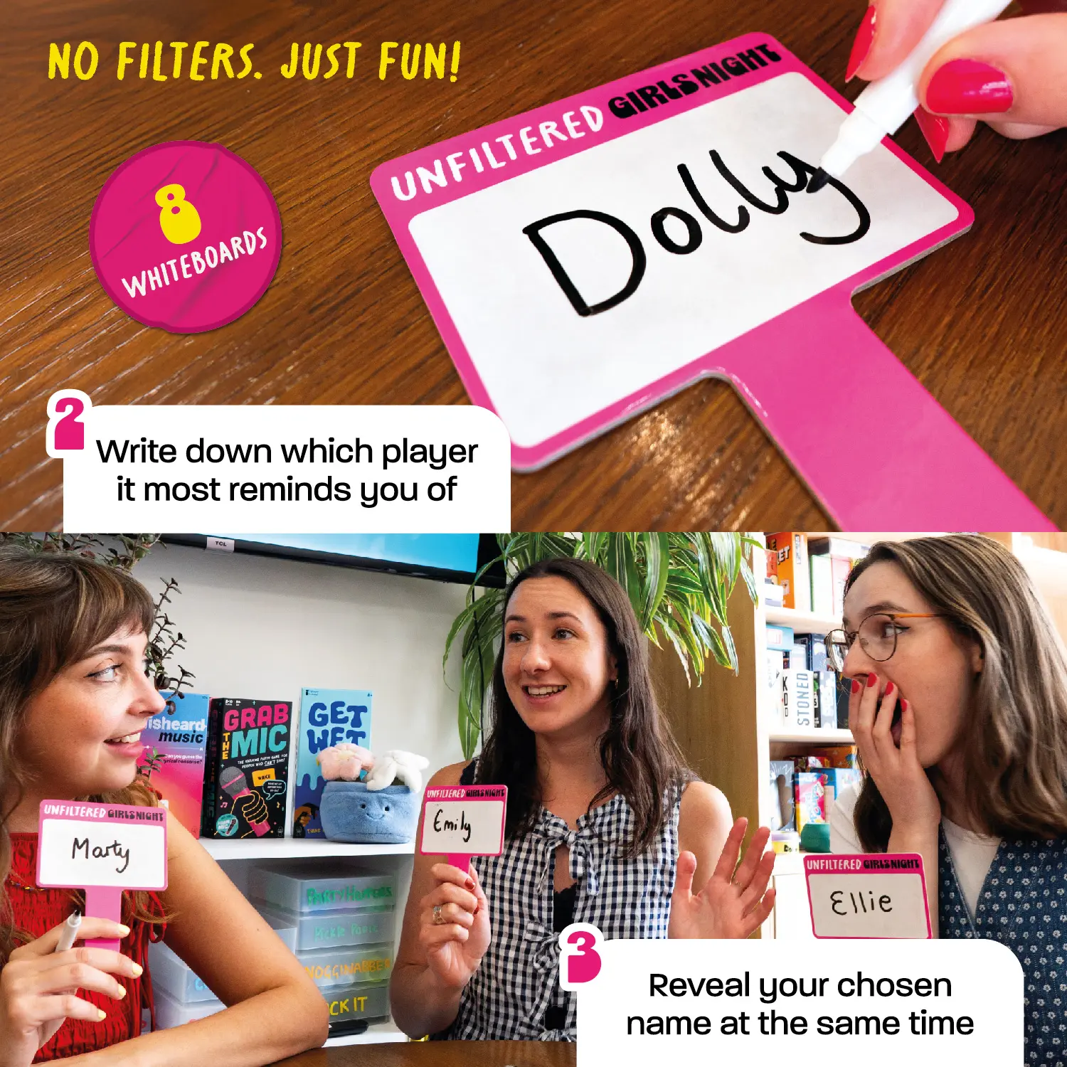 Think of Unfiltered Girls Night like a truth-or-dare game met a bottle of rosé and spilled all the tea. It's a hilariously savage party game where your honesty (and your friends’ reputations) take center stage.