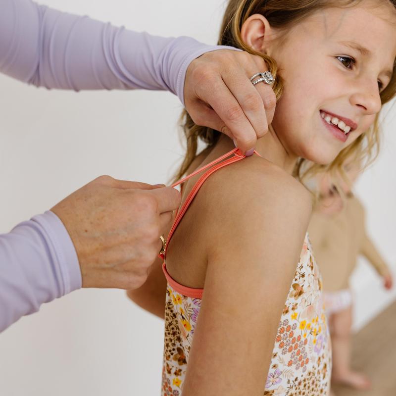 This short sleeve three-piece set is absolutely perfect to keep your independent girl covered from the sun while looking stylish. Rock the tankini with the bikini bottoms and toss on the rash guard for extra cute coverage on shoulders and arms!