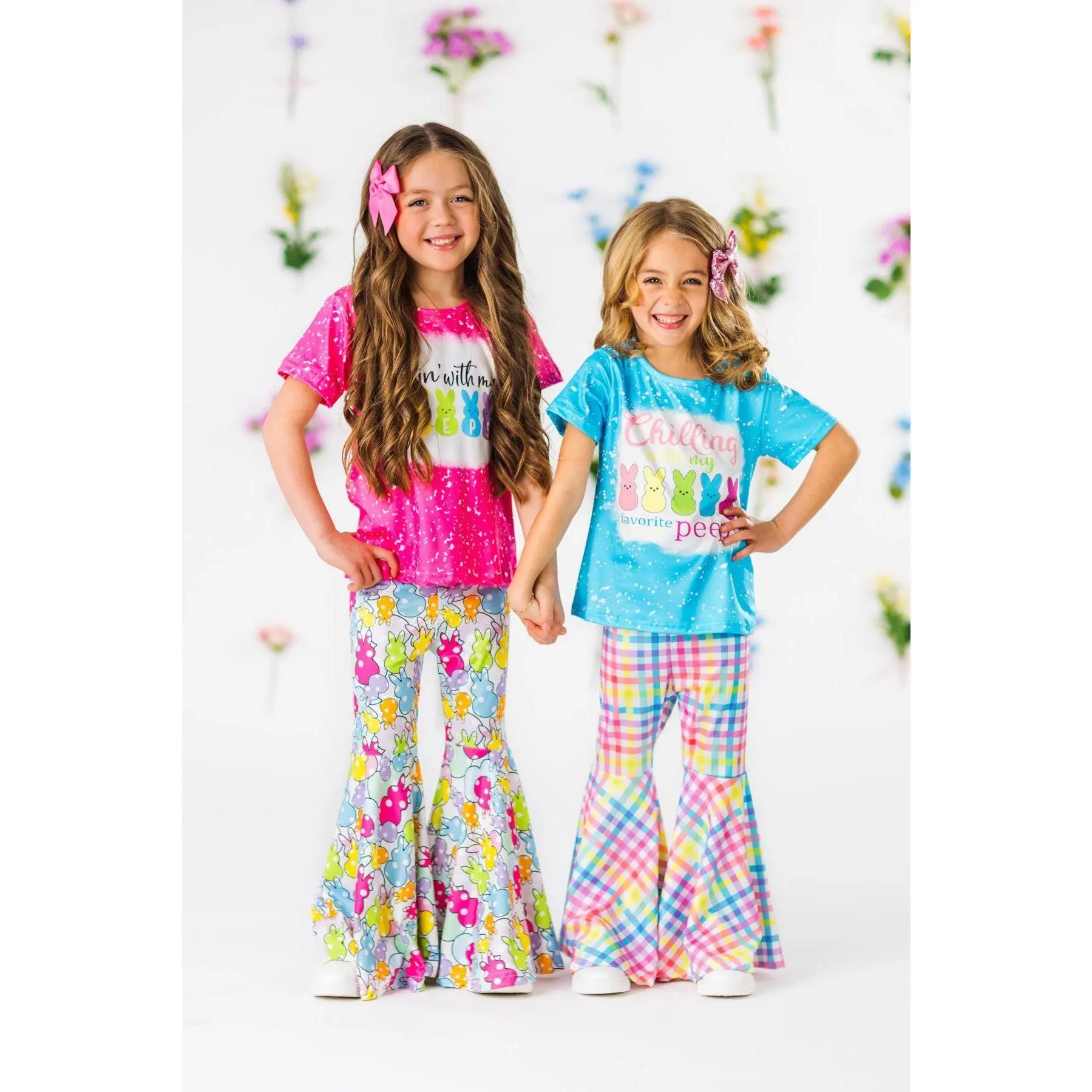 Your little one will look so adorable in our "Chilling With My Favorite Peeps" Blue Bell Bottom Set for girls. This short sleeve top looks adorable paired with the matching bell bottoms. The stretchy waistband helps comfort and fit and can be great for on the go, while the colorful plaid design adds a fun pop to her look. The top and bottoms can be worn as a set and paired with our matching bows or keep it laid back with a pair of sandals, she’ll shine bright in this kids ensemble.